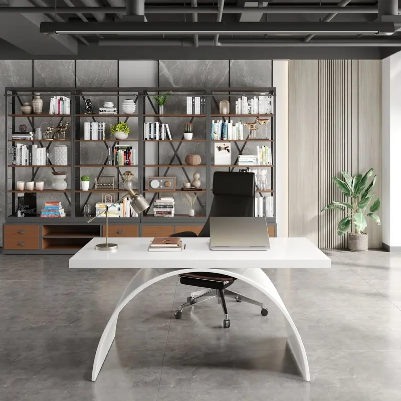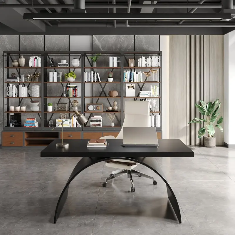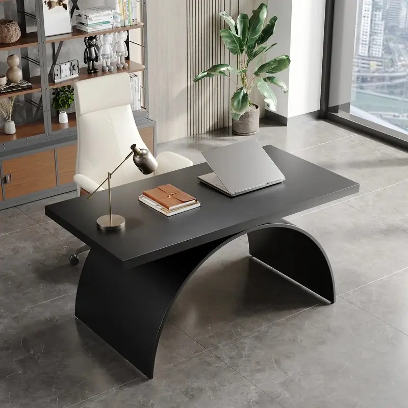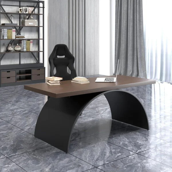 يعكس هذا المكتب مفهوماً متطوراً لبيئة العمل الحديثة، حيث تم تصميمه ليلبي احتياجات المكاتب المنزلية ومقرات العمل التي تتطلب توازباً بين المظهر الجمالي والأداء العملي. يتميز التصميم بخطوط واضحة وهيكل انسيابي يمنح المكان شعوراً بالاتساع والترتيب، مما يجعله قطعة مركزية هادئة تساعد على التركيز والإنتاجية بعيداً عن التشويش البصري. يتيح التصميم المفتوح للمكتب إمكانية استخدامه بمرونة عالية، سواء كمحطة عمل فردية واسعة أو مساحة مشتركة تخدم أكثر من شخص، مع إمكانية تنسيقه بسهولة مع مختلف أنماط الديكور الداخلي بفضل طابعه الكلاسيكي المتجدد.