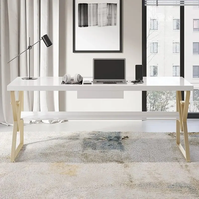 طاولة مكتب بتصميم عصري عملية تمنحك سطح عمل واسع وتنظيمًا يوميًا بفضل درج ورف، مع خامات متينة تناسب العمل والدراسة في المنزل.