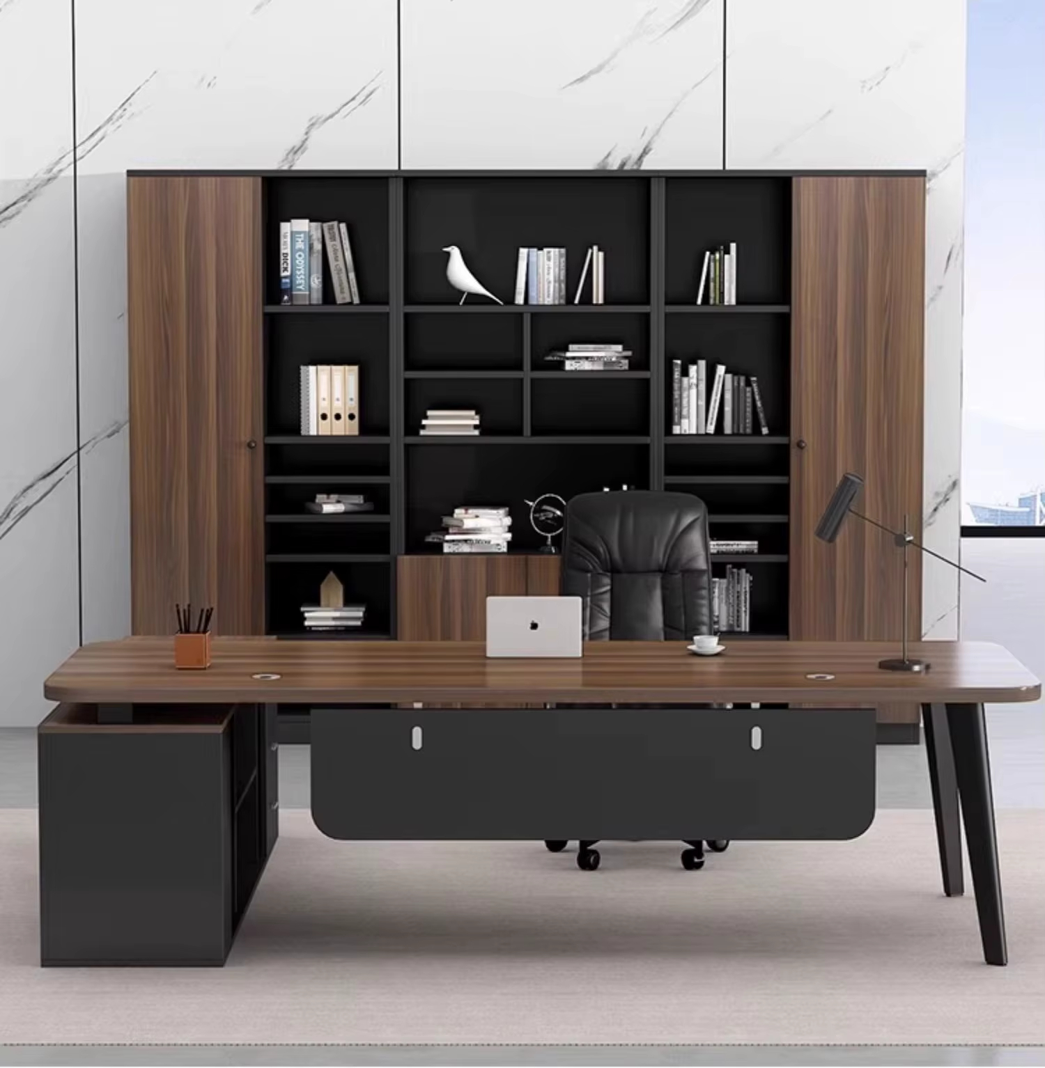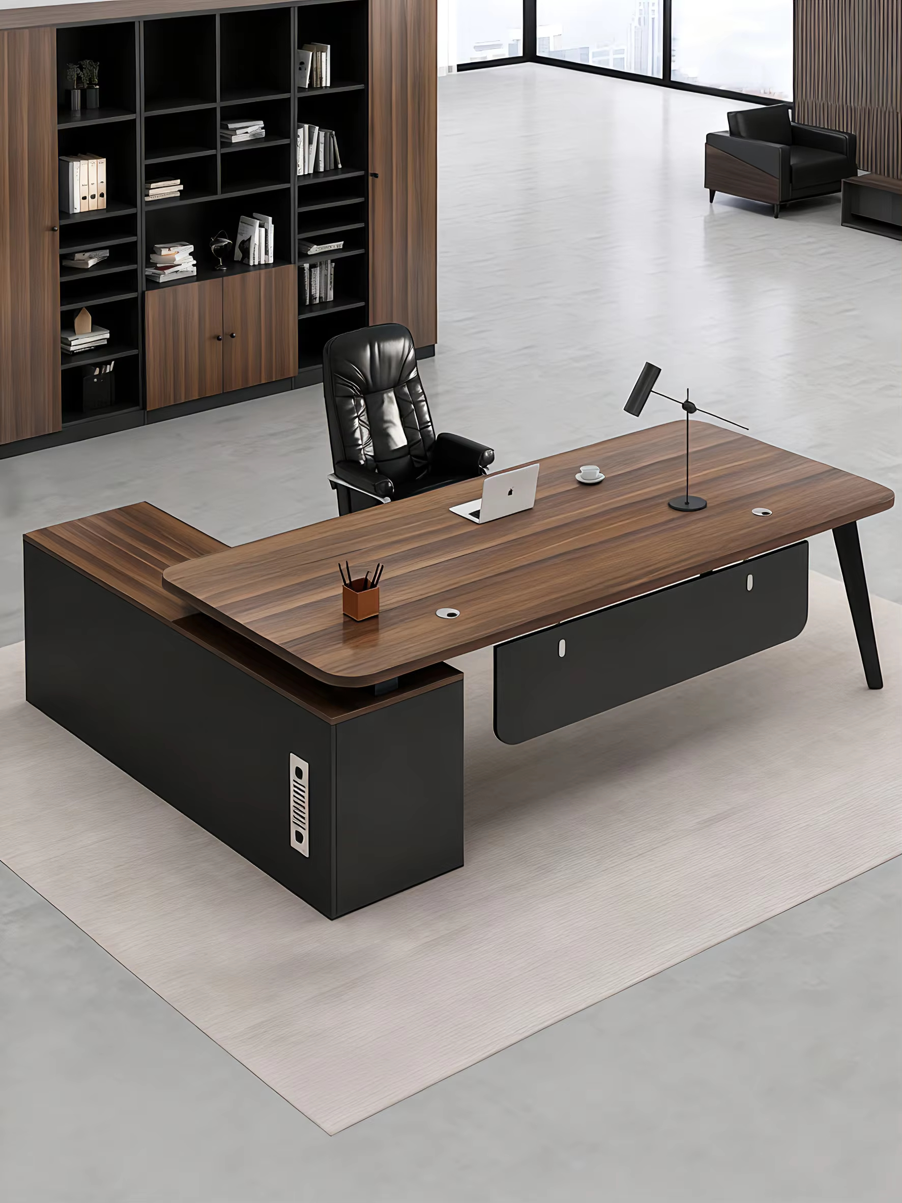 - ومو بس كذا تصميم المكتب راقي بأحدث التصميمات يضفي لمسة احترافية إلى مكتبك.