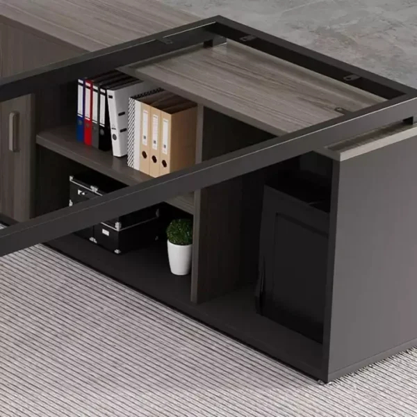 - اسم المنتج:مكتب خشبي مع خزانة جانبية بأدراج مميزة.