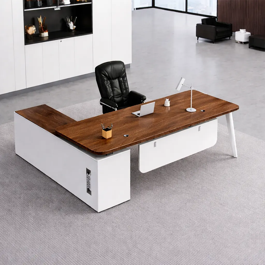 مكتب خشبي مع خزانة جانبية بأدراج مميزة