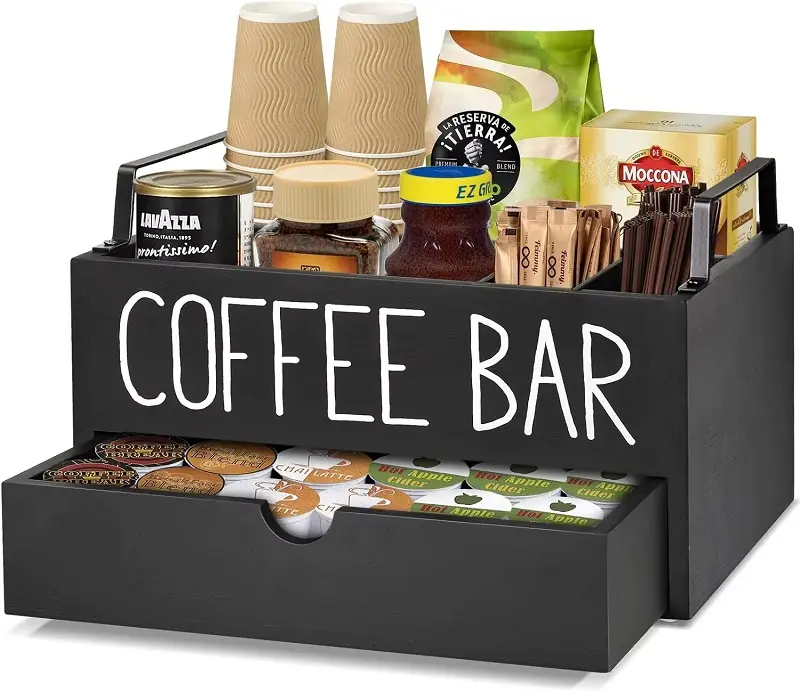 كوفي كورنر عملي بتنظيم ذكي يساعد على ترتيب أدوات القهوة ويمنح مساحة المعيشة مظهرًا أكثر ترتيبًا وراحة في الاستخدام اليومي.