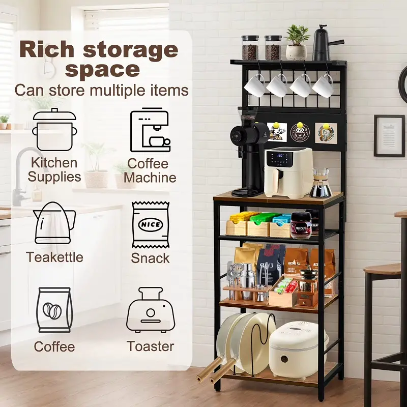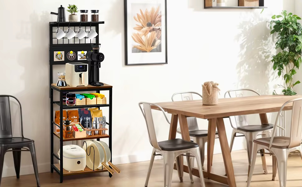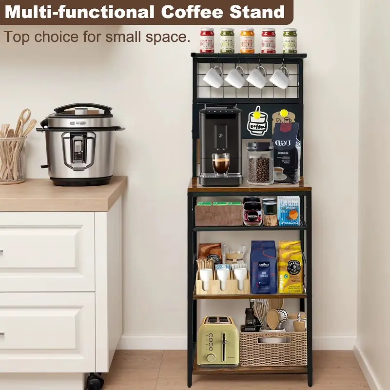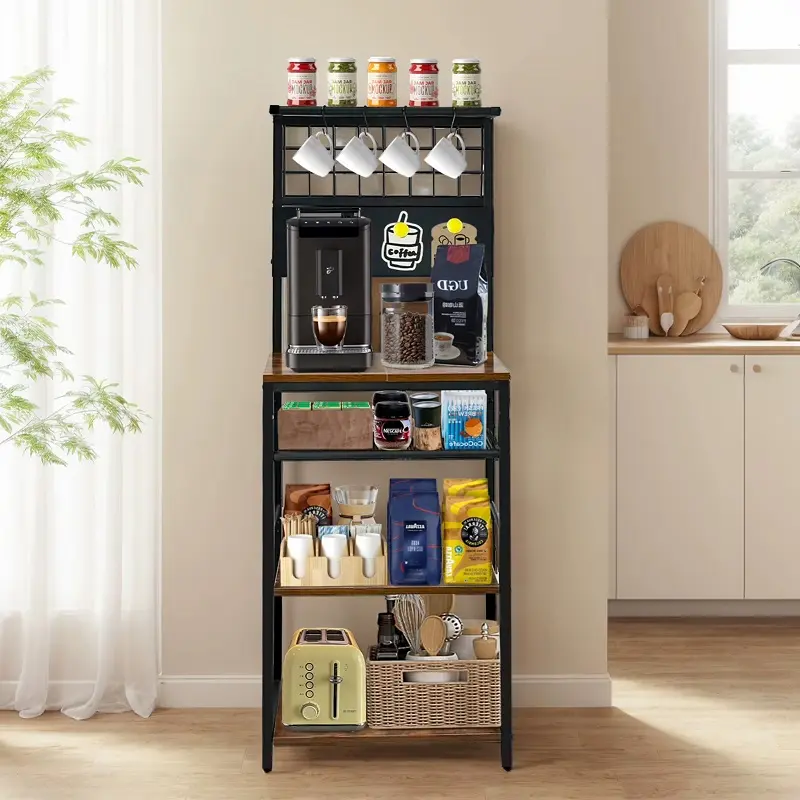 يوفر الكوفي كورنر أرفف متعددة تتيح ترتيب ماكينة القهوة، الأكواب، العلب، والإكسسوارات بشكل يسهل الوصول إليه. كما يمكن استخدامه كوحدة تنظيم إضافية للأدوات المنزلية الخفيفة، ما يجعله قطعة متعددة الاستخدام وليست حكرًا على ركن القهوة فقط. هذا الأسلوب في التنظيم يمنح المنزل مظهرًا أكثر ترتيبًا ويقلل الفوضى اليومية.