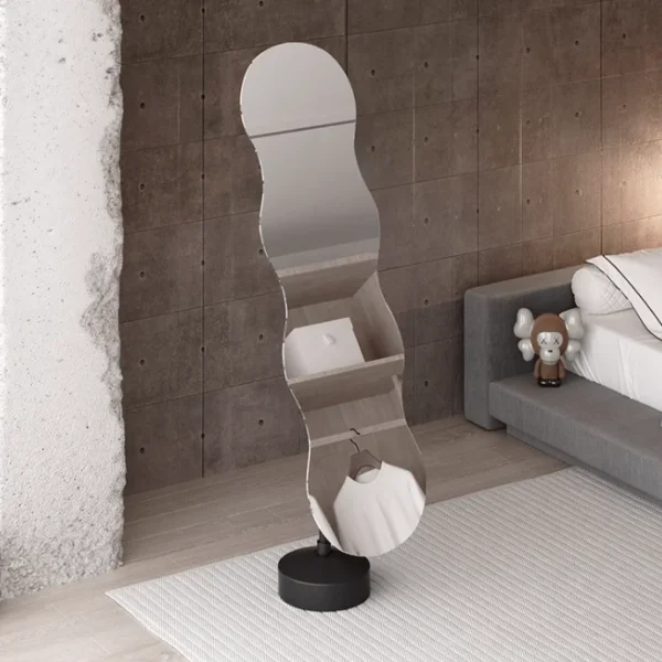 - مرايا طويلة مع درج لغرفة النوم المودرن هي مراية مصممة خصيصًا لتكون 3 في 1 أي أنها مرآة طولية للتجهز للخروج وخزانة سفلية بأدراج ممتازة وتصميم منقوش بحرفية يجعلها إضافة تعزز فخامة الغرفة.