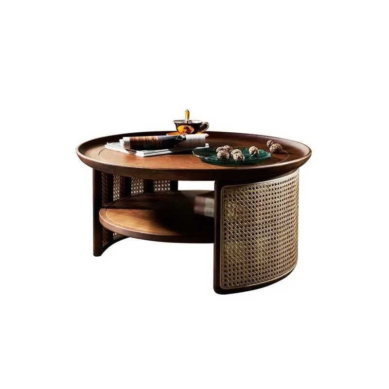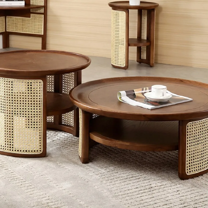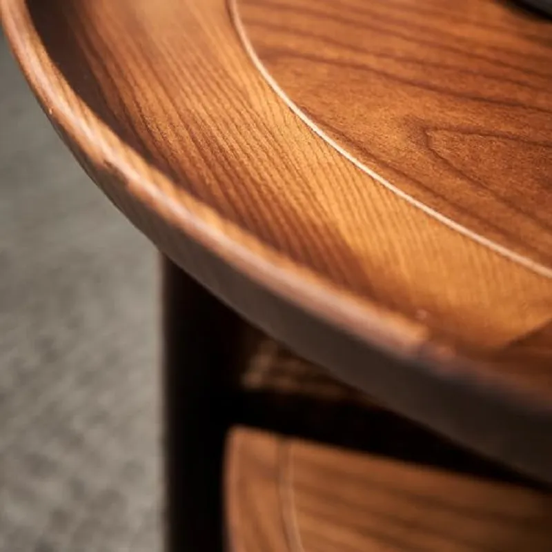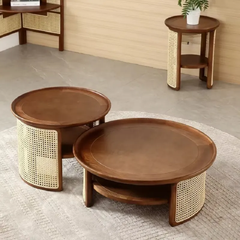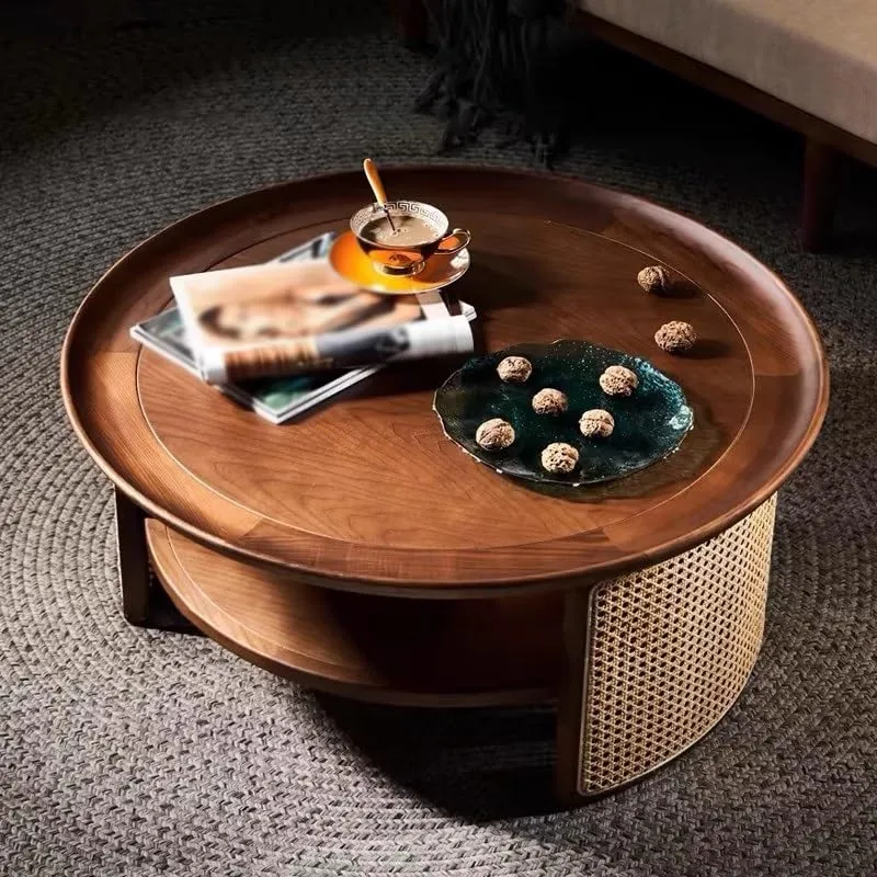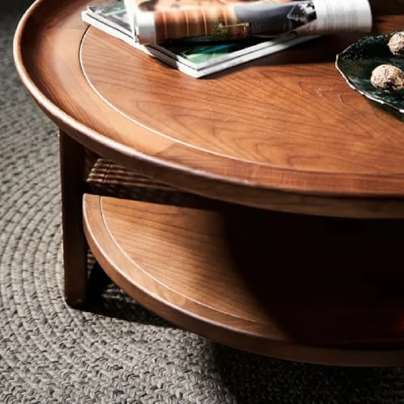 تتميز الطاولة بتصميم مزدوج يوفر مساحة عملية لوضع المشروبات، الكتب أو الإكسسوارات المنزلية بطريقة مرتبة وجذابة. تم تصنيع الهيكل من خشب هندسي عالي المتانة مع خشب زان روماني فاخر لضمان الثبات والقوة على المدى الطويل. السطح الخشبي المصقول يمنحها مظهراً دافئاً وفخماً يعكس الذوق الرفيع.