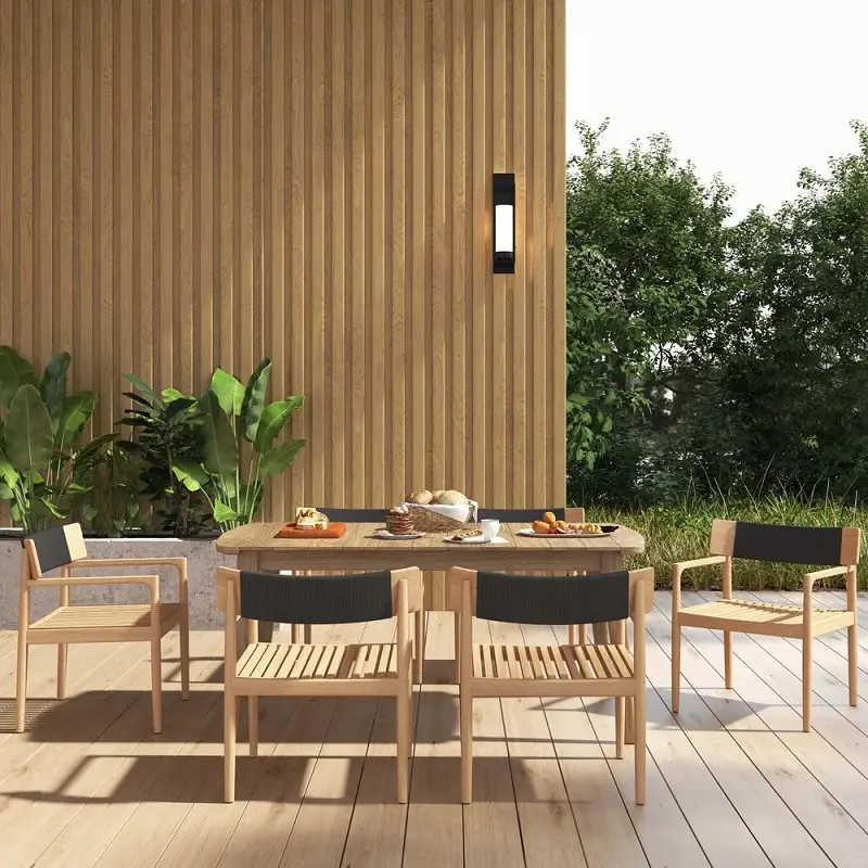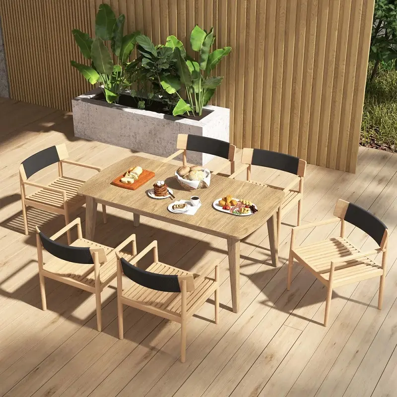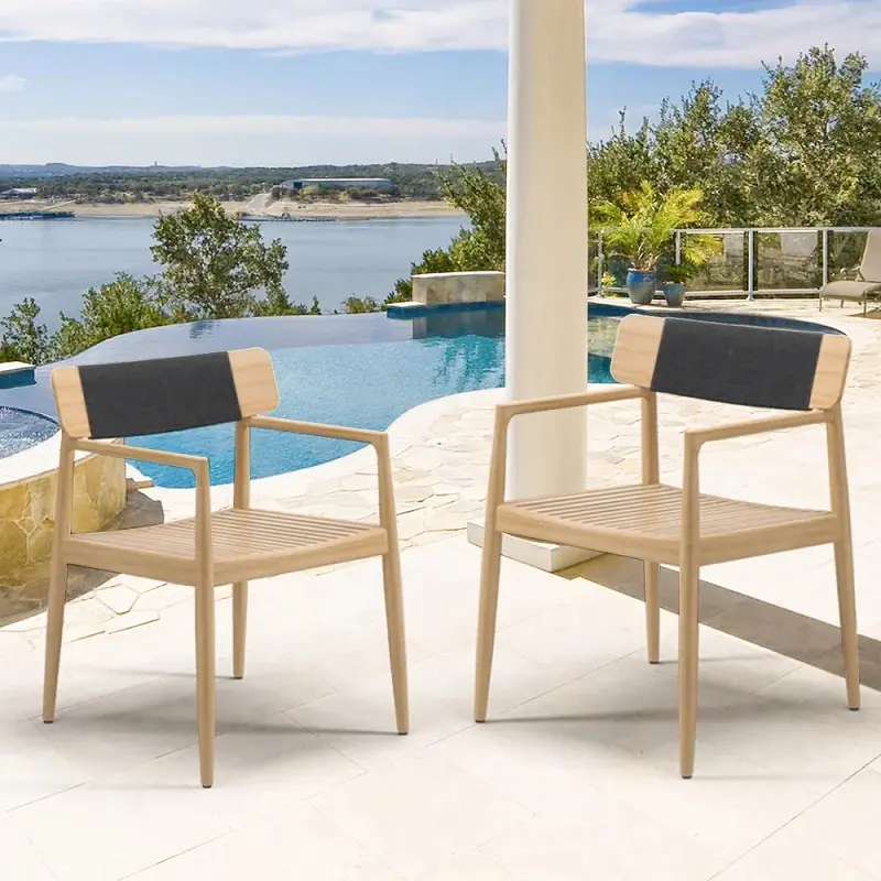 كرسي طاولة طعام للجلسة الخارجية تم تصنيع هذا الكرسي من خشب هندسي وخشب  زان روماني  متين عالي الجودة، المعروف بقوته وتحمله الممتاز للاستخدام اليومي، مما يجعله مثاليًا للأثاث الخارجي. يتميز خشب الزان بصلابته الطبيعية ومقاومته الجيدة للرطوبة والعوامل الجوية المعتدلة، ما يمنح الكرسي عمرًا أطول واستخدامًا أكثر أمانًا في البيئات المفتوحة مثل الحدائق والبلكونات.