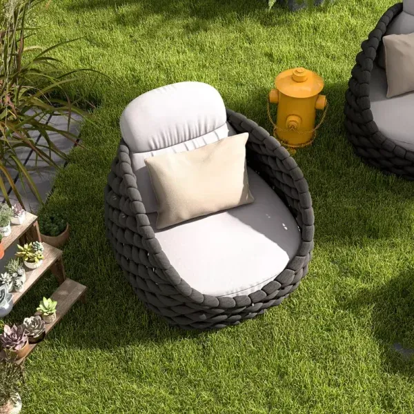 تصميم عصري فاخر: شكل منحني أنيق مع حبال منسوجة يدويًا يضفي لمسة فاخرة على المساحات الخارجية