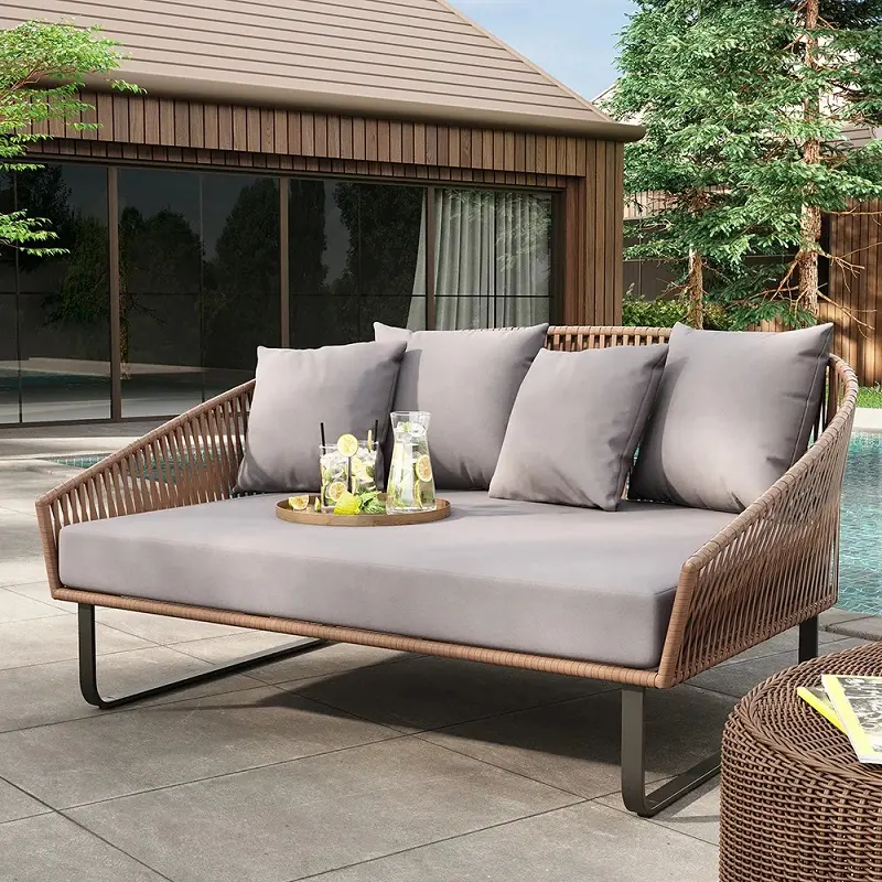 كنب سرير خارجي يمنحك جلسة مريحة ومساحة تمدد أنيقة في الحديقة أو التراس، بخامات عملية تتحمل الاستخدام اليومي وتناسب الأجواء الخارجية.
