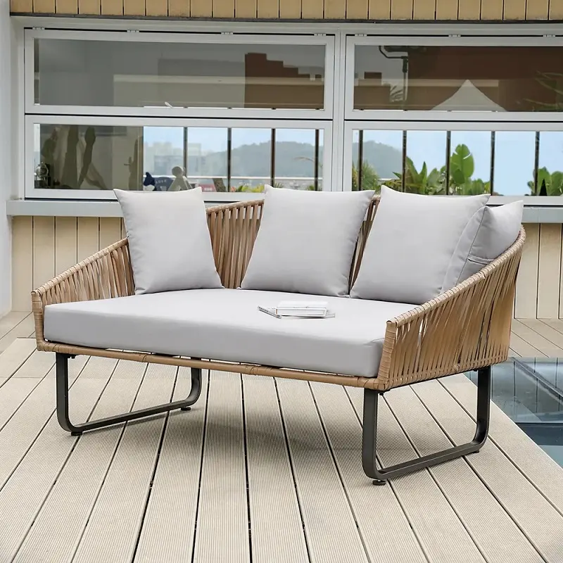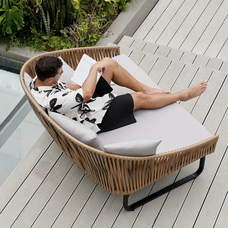 كنب سرير خارجي مصمم لمنحك منطقة جلوس وتمدد في قطعة واحدة، مع خطوط منحنية ناعمة تعطي مظهرًا مرتبًا ومتناسقًا مع مختلف تنسيقات المساحات الخارجية. هذا التصميم مناسب لمن يريد كنب مريح يخفف ضغط الجلوس الطويل، ويمنح مساحة أوسع للاسترخاء خلال اليوم.