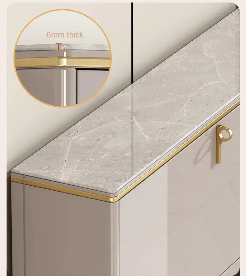 خزانة أحذية عملية بتصميم أنيق تساعد على ترتيب المدخل أو غرفة المعيشة بشكل منظم وسهل العناية، مع سطح رخام يضيف طابعًا راقيًا للاستخدام اليومي.
