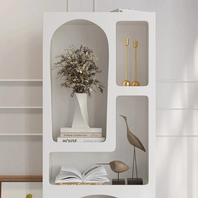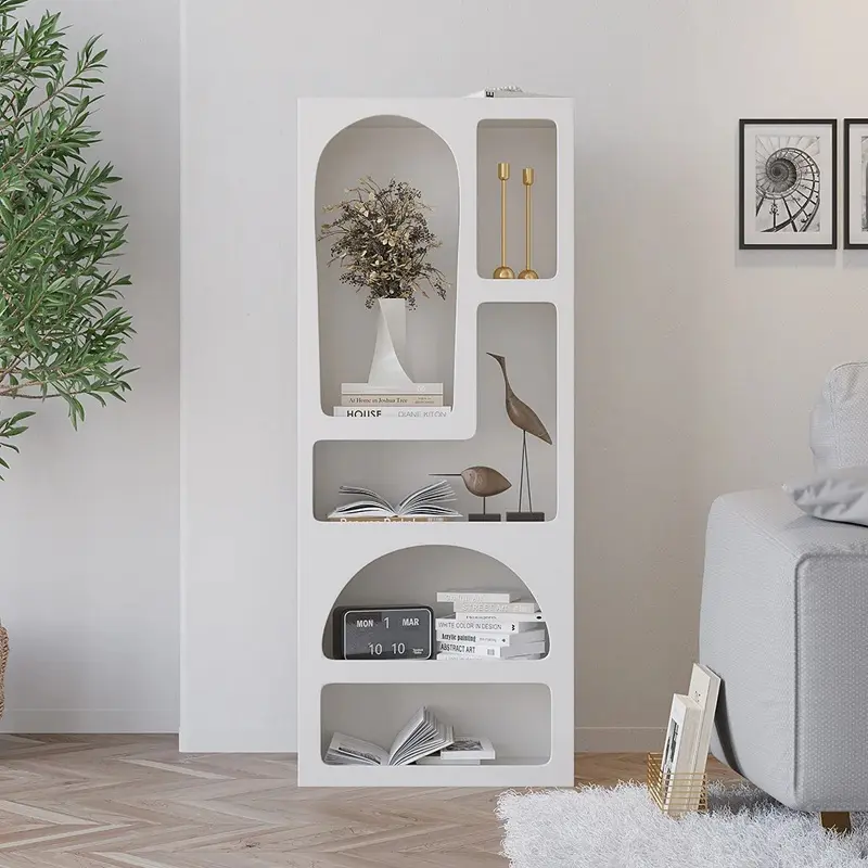رفوف مكتبة على الطراز الفني مصنوعة من خشب زان متين عالي الجودة، بلون أبيض أنيق، بارتفاع 150 سم، عرض 60 سم وعمق 30 سم. تصميم مثالي لتنظيم الأدوات والكتب بشكل عصري يناسب المكاتب وغرف المعيشة.