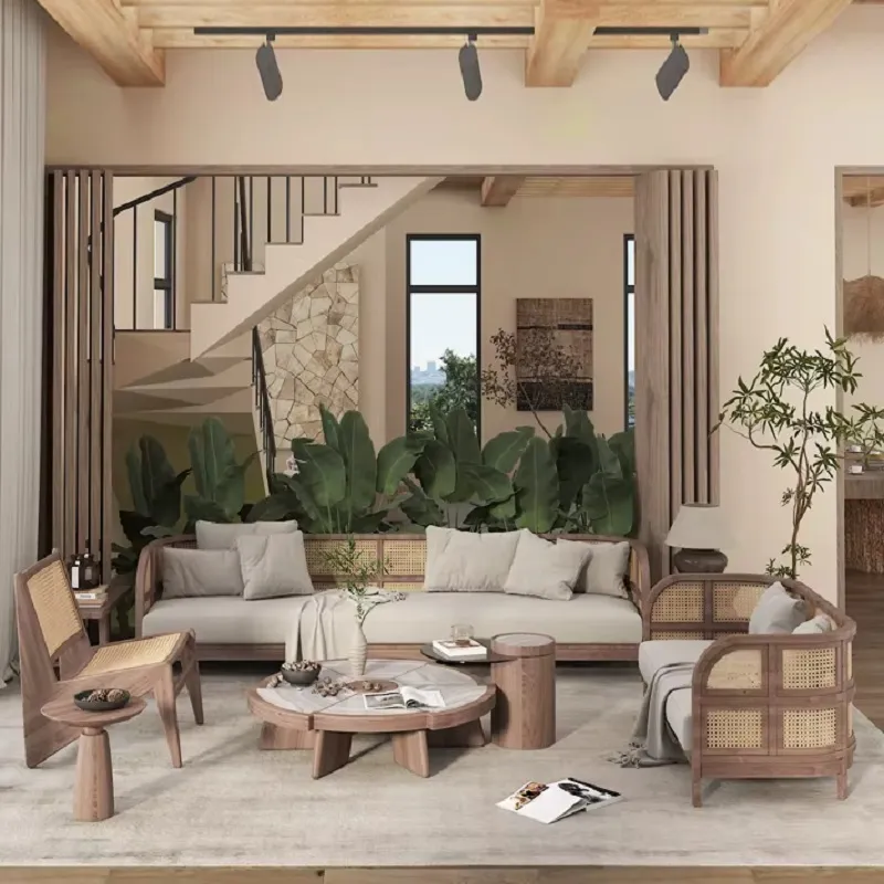 يأتي الطقم بلون خشبي متعدد الألوان يمنح مظهرًا طبيعيًا وفخمًا في الوقت نفسه، مما يجعله مناسبًا لمختلف أنماط الديكور.