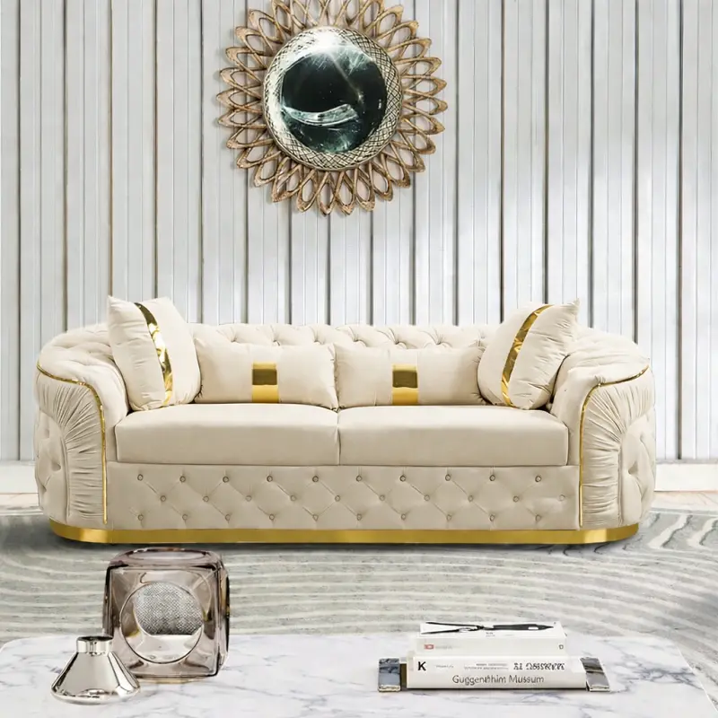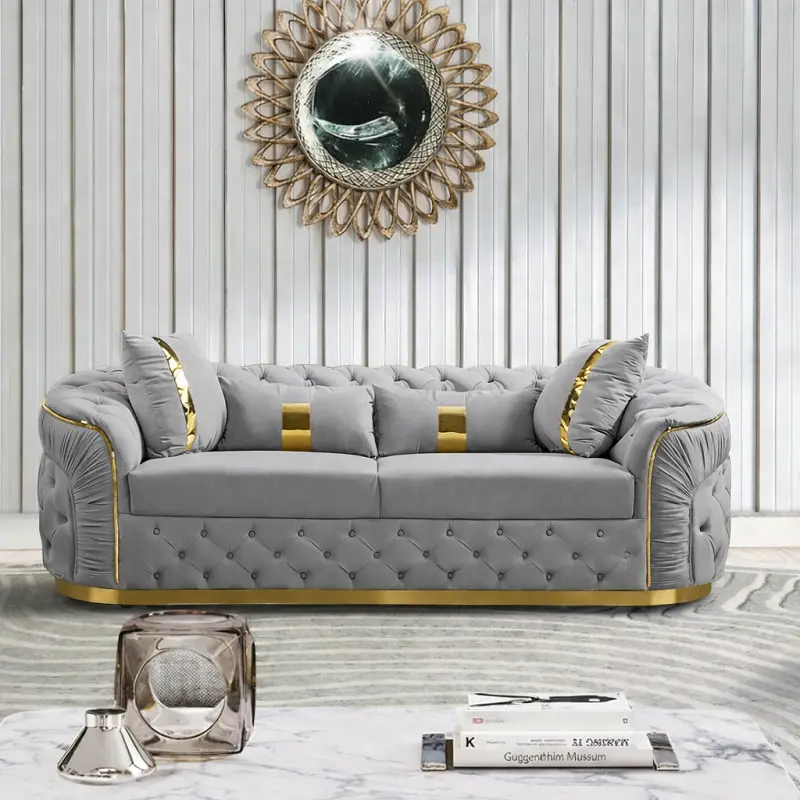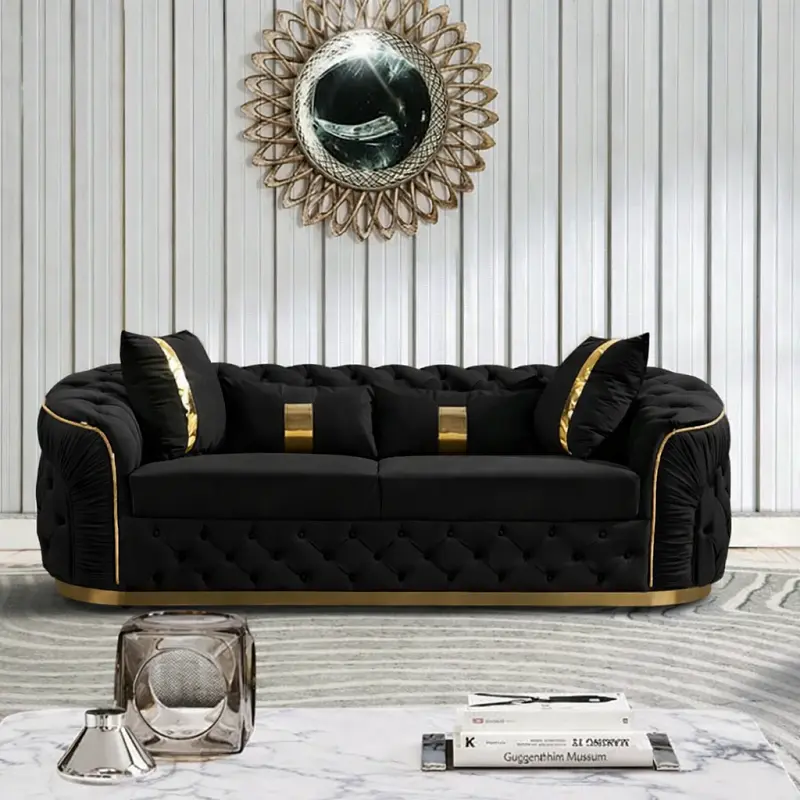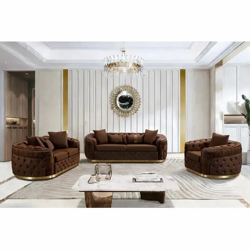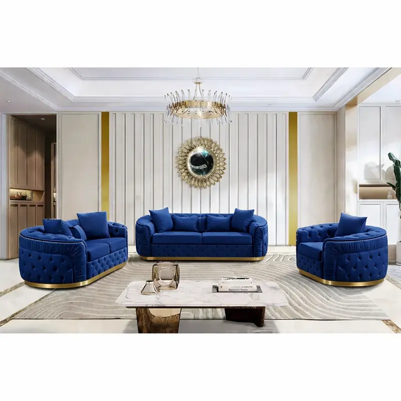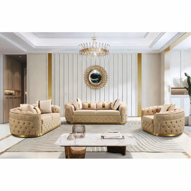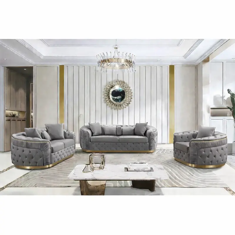طقم كنب فاخر ، الذي يجمع بين التصميم العصري والجودة العالية. متوفر بمقاسات متعددة وألوان متنوعة، مما يجعله خيارًا مثاليًا لأي مساحة داخلية. يتميز الطقم بقاعدة من الاستيل المذهب وضمان لمدة سنتين ضد عيوب التصنيع، مما يجعله اختيارًا آمنًا وموثوقًا.
