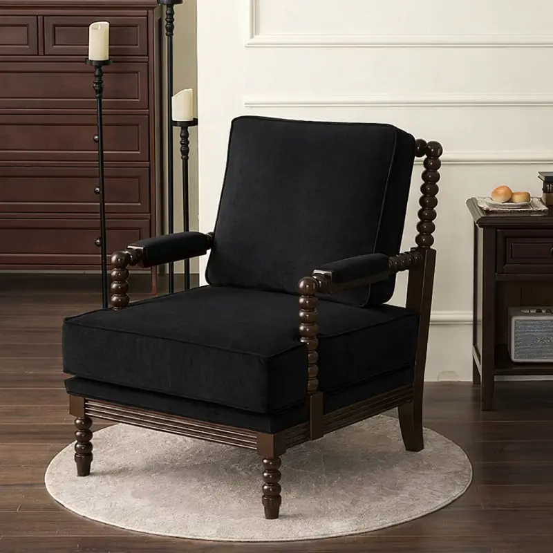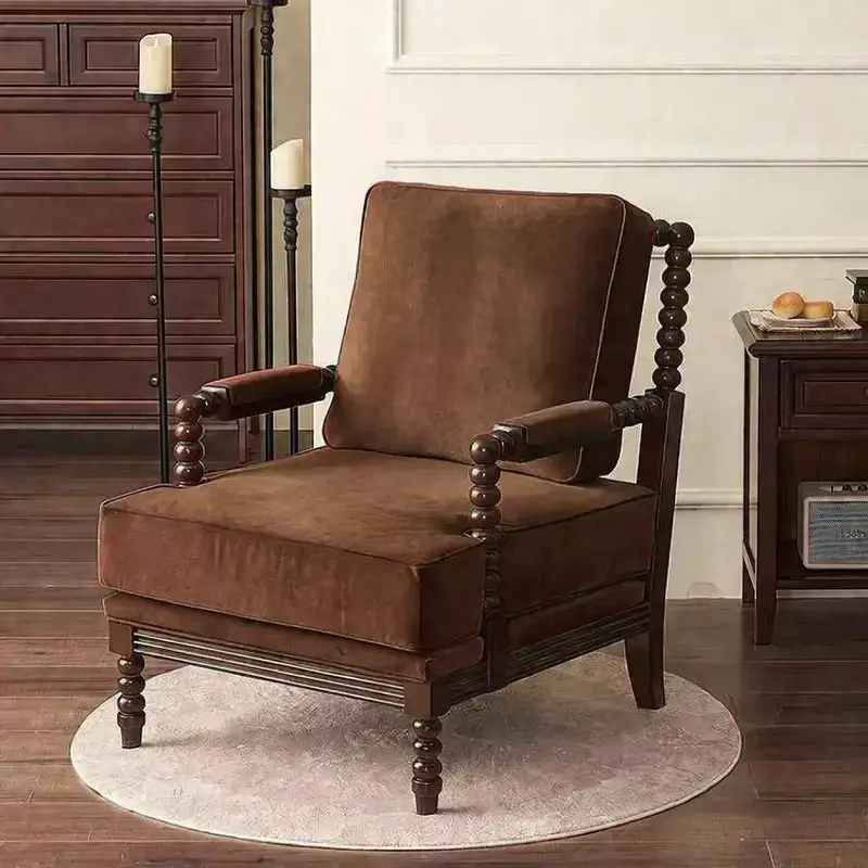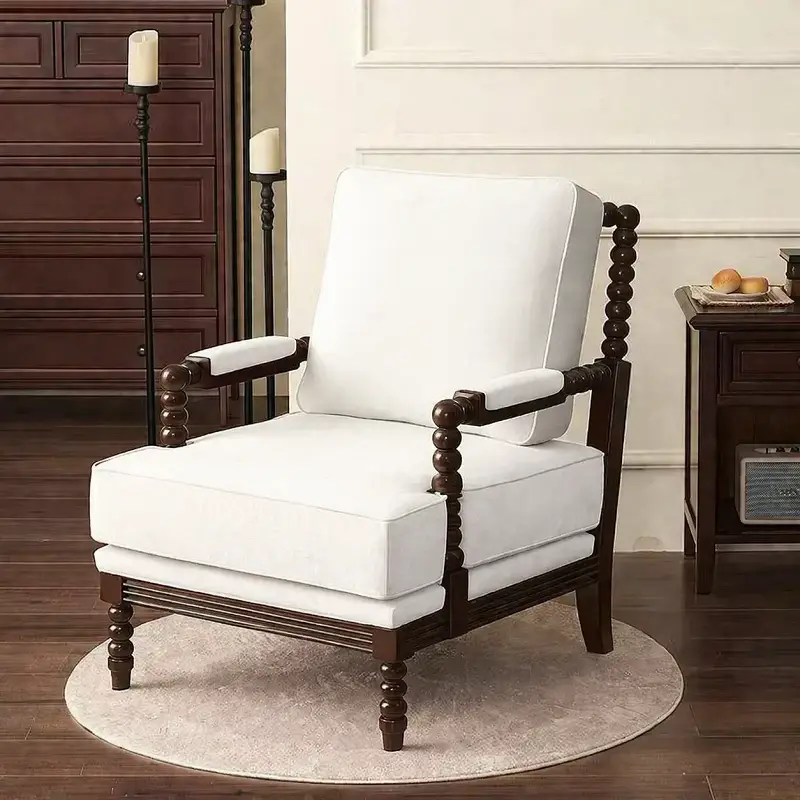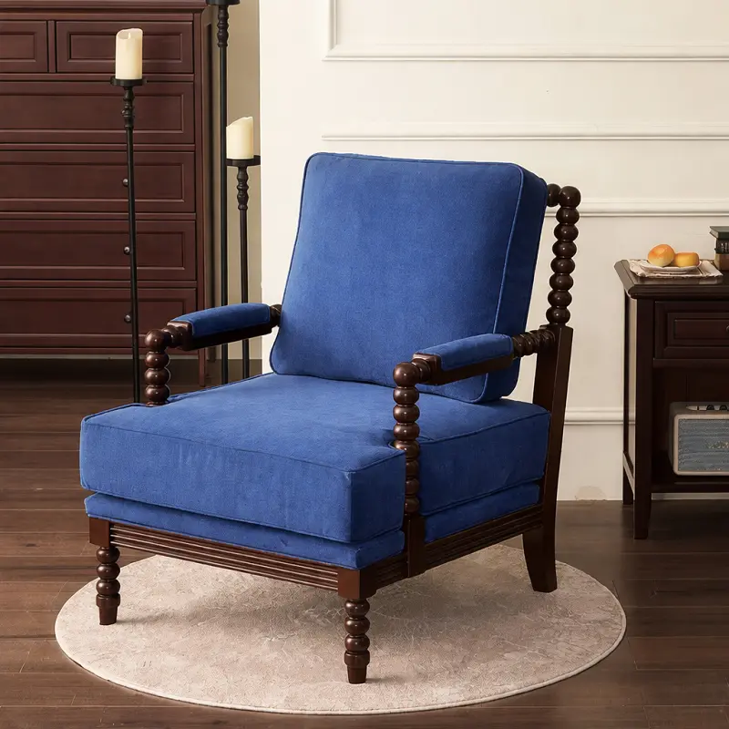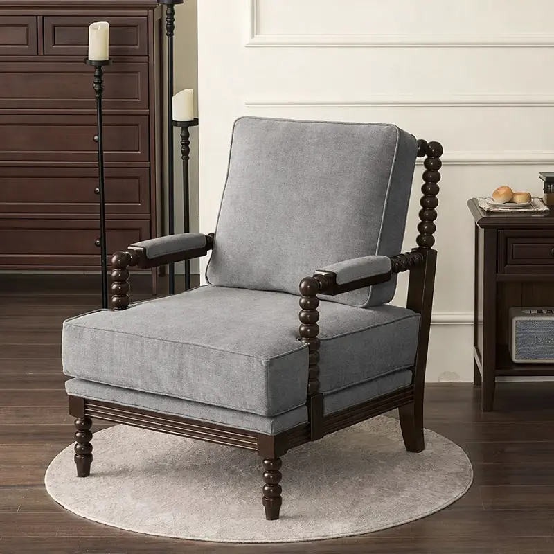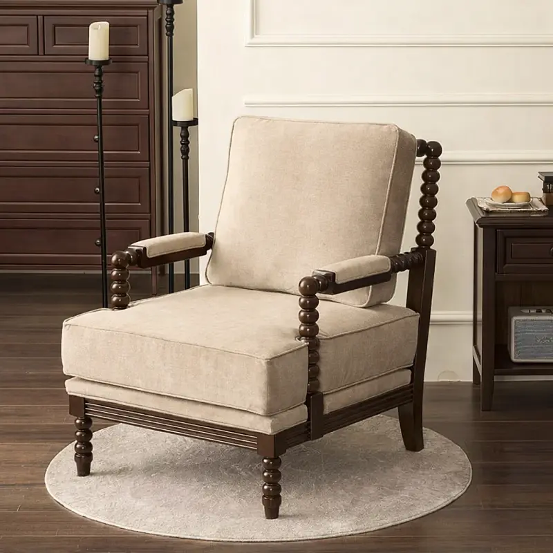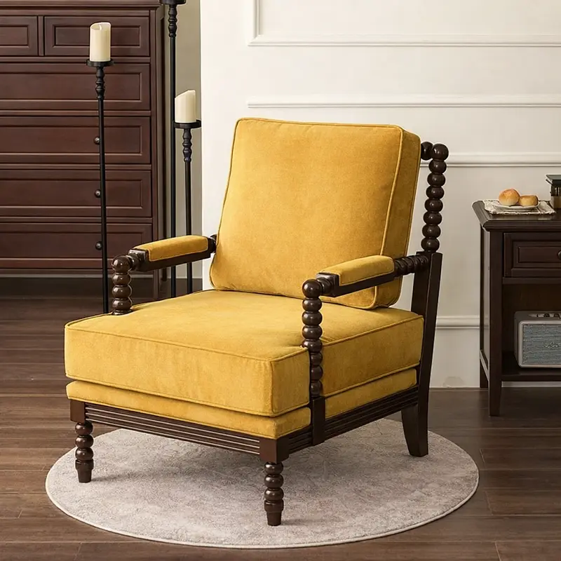 كرسي منفرد بتصميم ريفي أنيق يناسب مختلف المساحات. مصنوع من هيكل خشبي هندسي مع خشب زان روماني عالي الجودة ومبطن بقماش ناعم وإسفنج عالي الكثافة للراحة. يتميز بسهولة التنظيف وألوان متعددة تضيف لمسة فريدة لديكور منزلك. مثالي للاسترخاء أو استقبال الضيوف. يأتي مع ضمان سنتين ضد عيوب التصنيع لضمان الجودة والراحة
