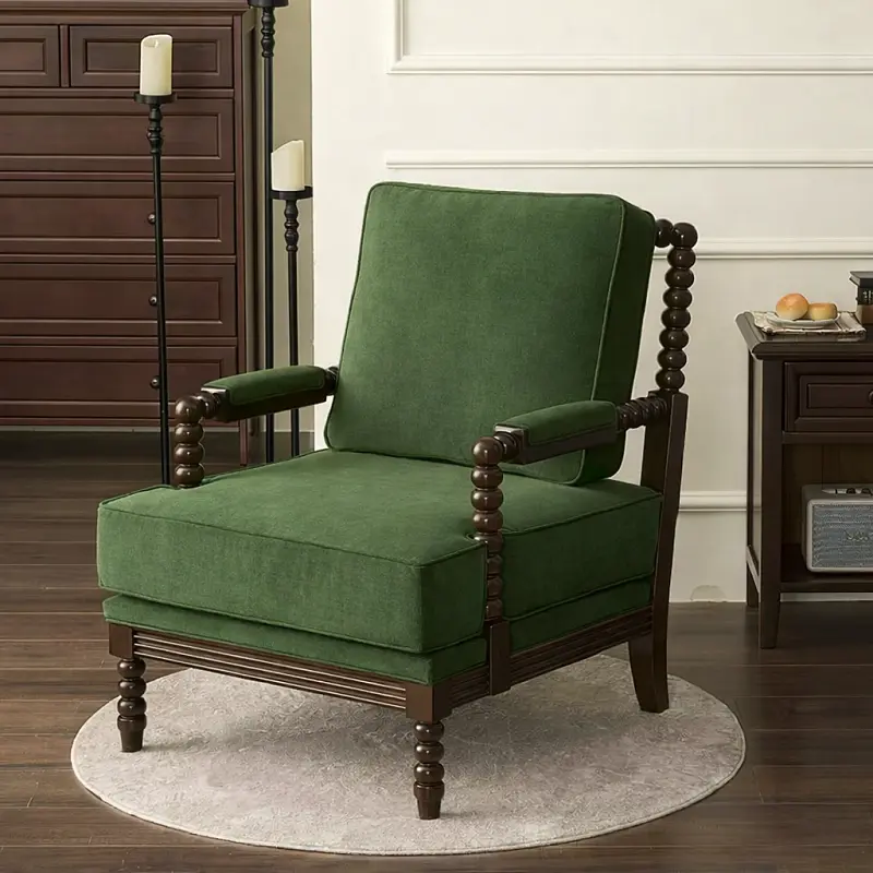 كرسي مفرد اخضر كلاسيك أنيق يضيف لمسة فخمة لغرفة معيشتك.
