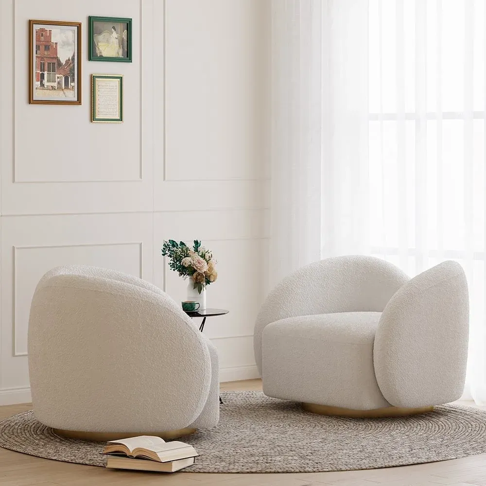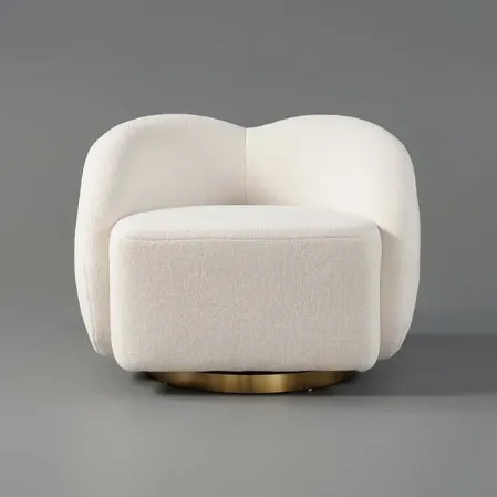 احصل على كرسي مفرد عصري دوار بتصميم كلاود من قماش المخملي الأبيض، مع قاعدة دوارة بزاوية 360 درجة لتجربة جلوس فاخرة في منزلك.