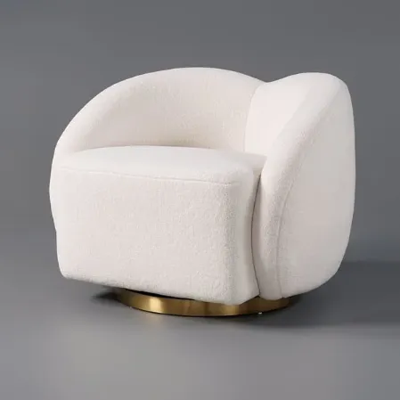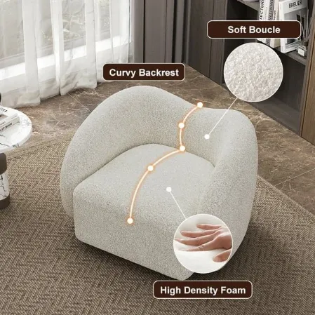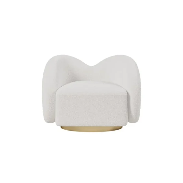 تم تنجيد الكرسي بقماش مخملي أبيض فاخر يتميز بملمسه الناعم ومظهره الراقي، ليمنحك إحساسًا بالراحة وكأنك تجلس على سحابة. كما تأتي القاعدة الدوّارة بزاوية 360 درجة لتوفر حرية حركة وسهولة في الاستخدام، سواء للاسترخاء، القراءة، أو الجلوس مع العائلة والأصدقاء.
