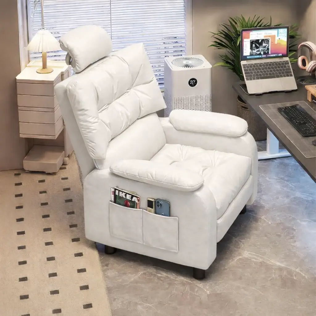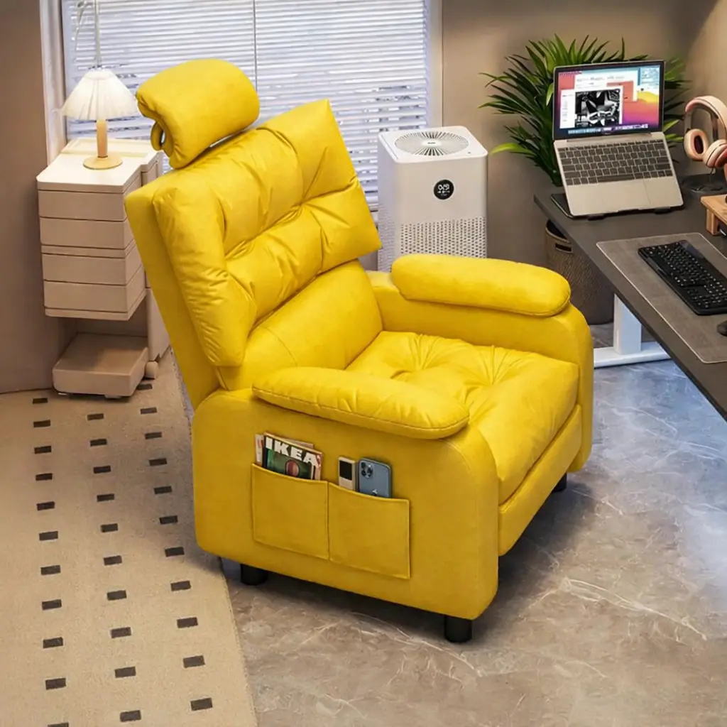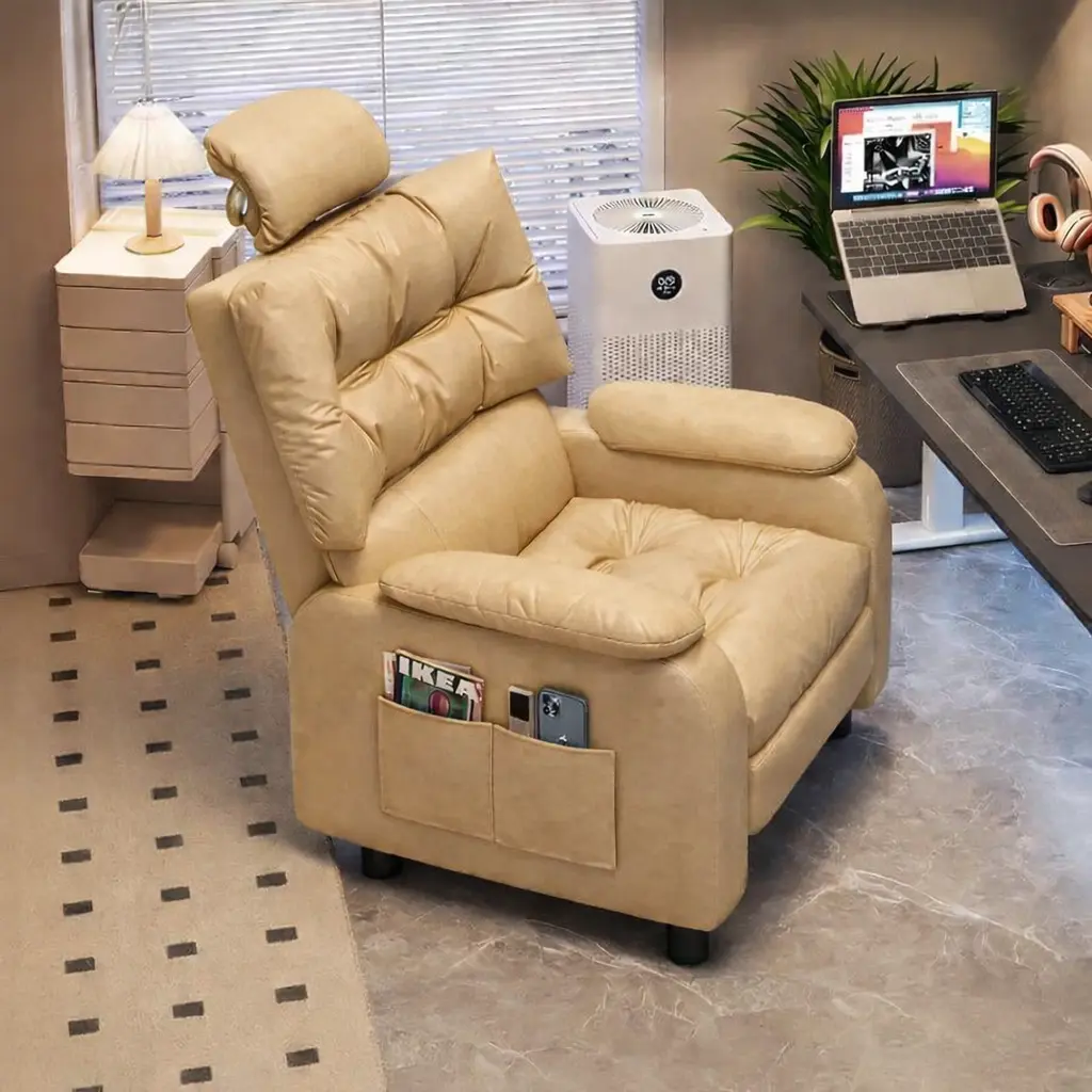 اخترت الكرسي هذا لغرفتي، اللون روعة والتصميم جميل. بس لو بس الجلد يجي مختار أسهل في التنظيف.