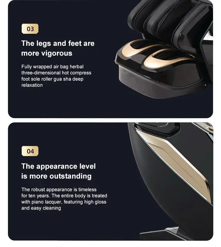 يأتي هذا كرسي تدليك بعدد كبير من الوظائف التي تمنح تجربة أكثر شمولًا ومرونة. يضم قضبان SL طويلة للغاية لتغطية أفضل لمناطق الجسم، مع شاشة لمس LCD عالية الدقة تساعد على التحكم في الإعدادات بسهولة ووضوح. كما يحتوي على 24 وضعًا ذكيًا للتدليك، وهو ما يمنح المستخدم خيارات متعددة تناسب أوقات الراحة المختلفة.
