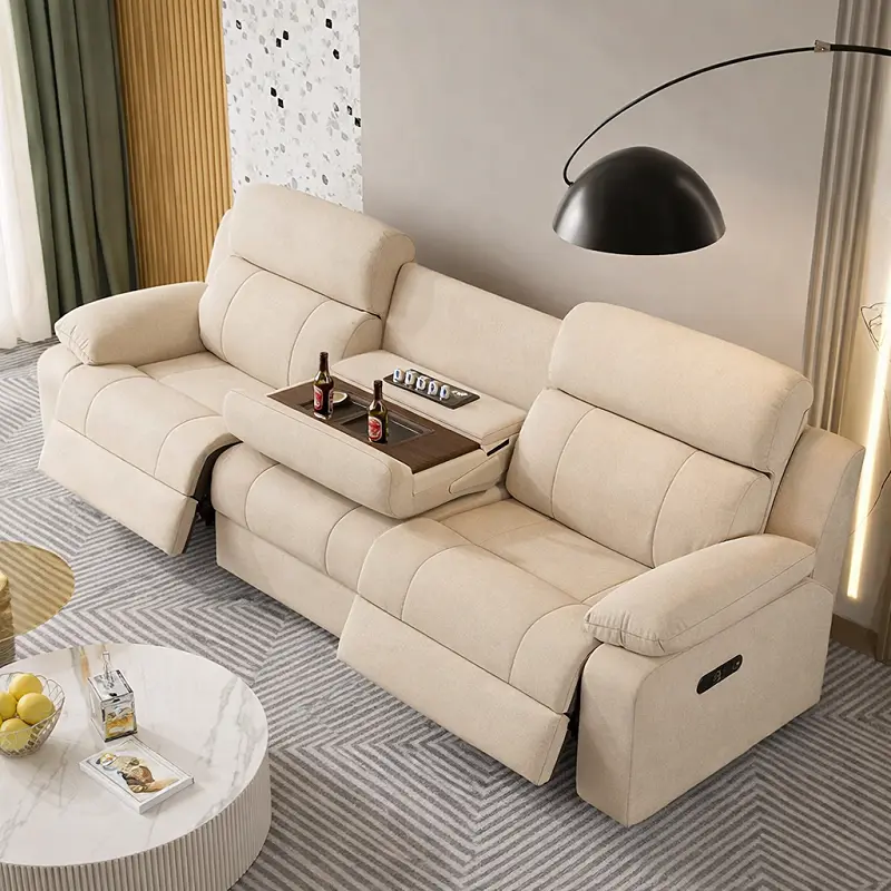 طقم كنب استرخاء مودرن لون بيج المميز لإضافة لمسة من الراحة والأناقة إلى غرفة المعيشة الخاصة بك. يمكنك تنظيفه بسهولة باستخدام مسحة رقيقة عند الحاجة.