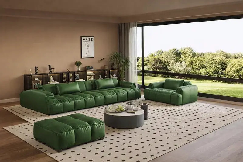اجعل منزلك أكثر أناقة ورفاهية مع كنبة الجلد المميزة والفاخرة. تصميم مودرن يجمع بين الأناقة والراحة،