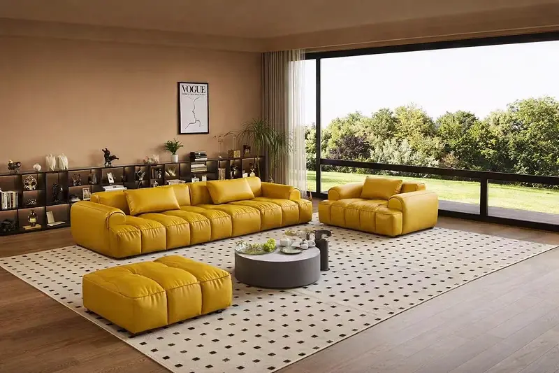- اسم المنتج: كنب صاله مودرن من جلد فاخر.