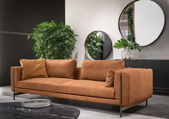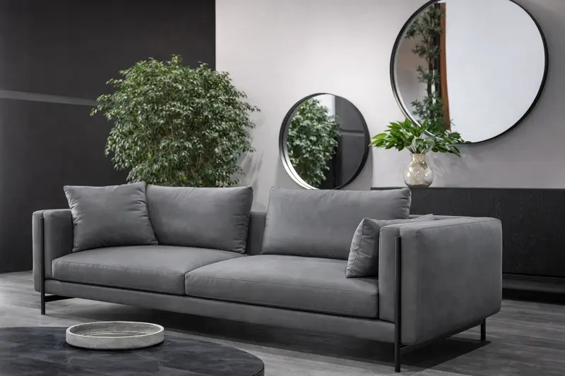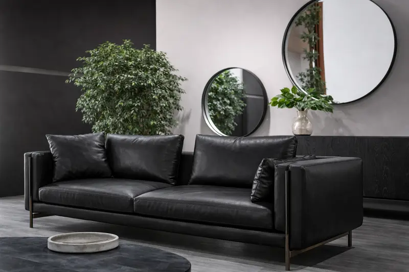 كنب صاله مريح غرفة المعيشة تتألق بأناقة وعصرية مع كنب مودرن. تصميم أنيق يتميز بجلده الإيطالي عالي الجودة وهيكله الصلب المصنوع من الخشب الهندسي والخشب الزان الروماني. يتوفر بأحجام متعددة لتتناسب مع مساحة غرفتك.