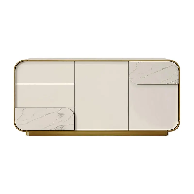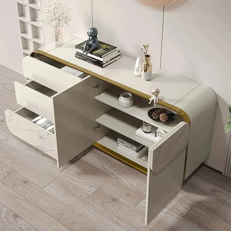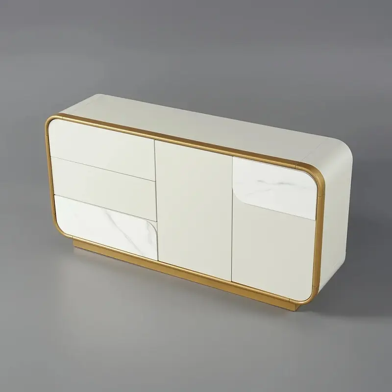 طاولة بوفيه بتصميم عصري فاخر حديث مصنوعة من خشب هندسي وخشب زان روماني متين عالي الجودة مع سطح رخامي فاخر.