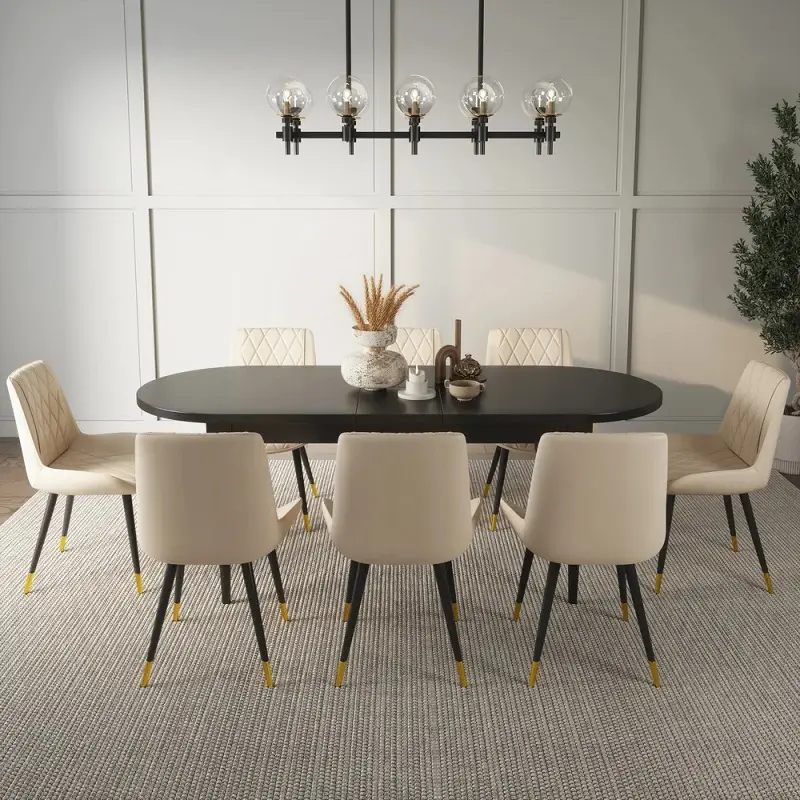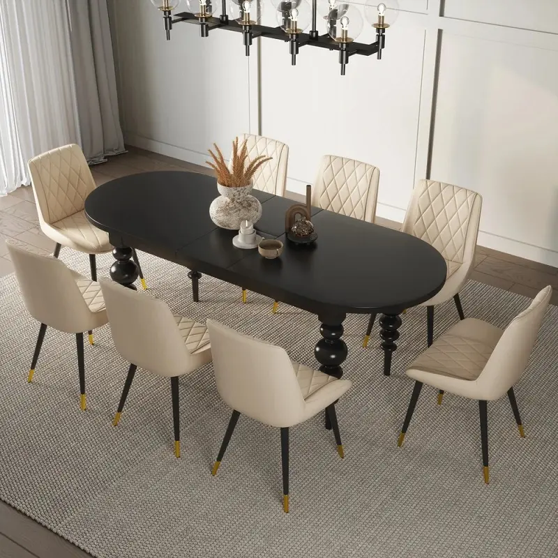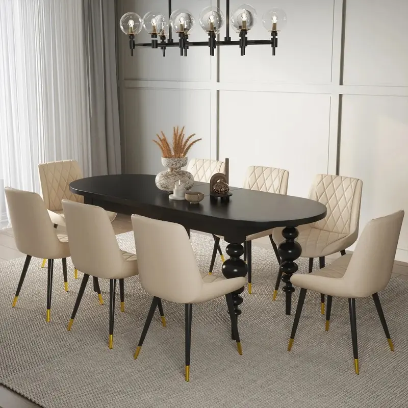 الشكل البيضاوي يساعد على حركة مريحة حول الطاولة ويقلل حدة الزوايا، بينما ميزة التمديد تمنحك مرونة في استقبال الضيوف وتنظيم الجلسات. لذلك تُعد خيارًا عمليًا لمن يفضل طاولة طعام كبيرة عند الحاجة دون التزام دائم بمساحة ثابتة.