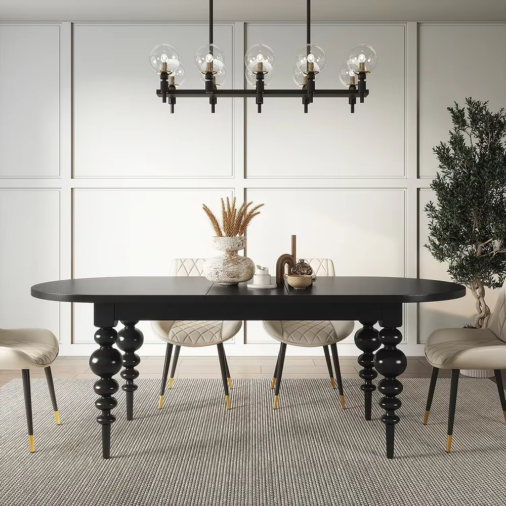 الشكل البيضاوي لا يضيف فقط لمسة جمالية، بل يساهم في سهولة الحركة حول الطاولة ويجعلها أكثر أمانًا داخل المنزل، خاصة في المساحات التي تتطلب مرونة في التنقل. بالإضافة إلى ذلك، توفر ميزة التمديد إمكانية تحويلها إلى طاولة طعام كبيرة عند الحاجة، وهو ما يمنحك مرونة عالية في ترتيب الجلسات واستقبال عدد أكبر من الأشخاص.