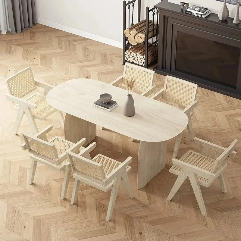 يعتبر طقم طاولة الطعام الخشبي هذا من الخيارات المثالية التي تجمع بين العملية والأناقة لتزيين غرفة الطعام بأسلوب يعكس الذوق الرفيع. تم تصميم هذا الطقم خصيصًا ليلائم أجواء البيوت الخليجية ويواكب احتياجات العائلات العصرية في السعودية ودول مجلس التعاون، حيث يجمع بين الجودة العالية، التصميم العملي، والراحة المثالية أثناء الجلوس.