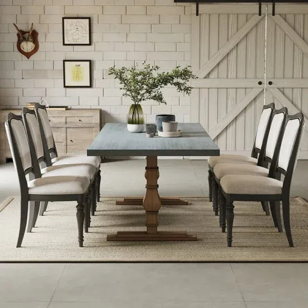 طاولة طعام خشب مستطيلة بتصميم ريفي