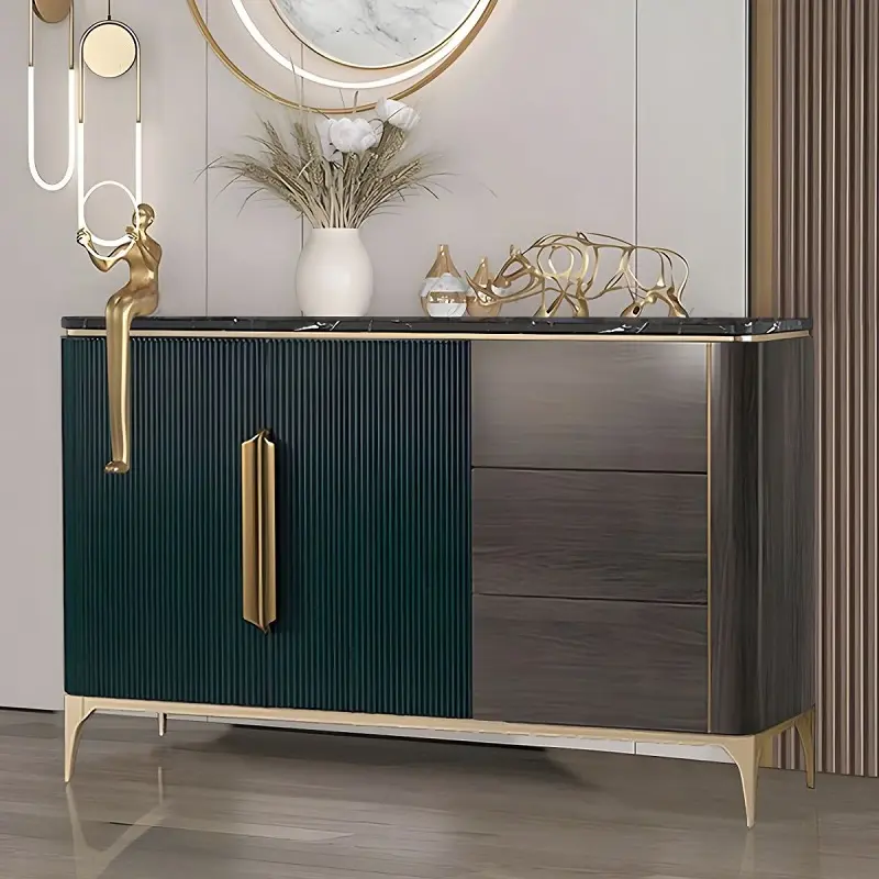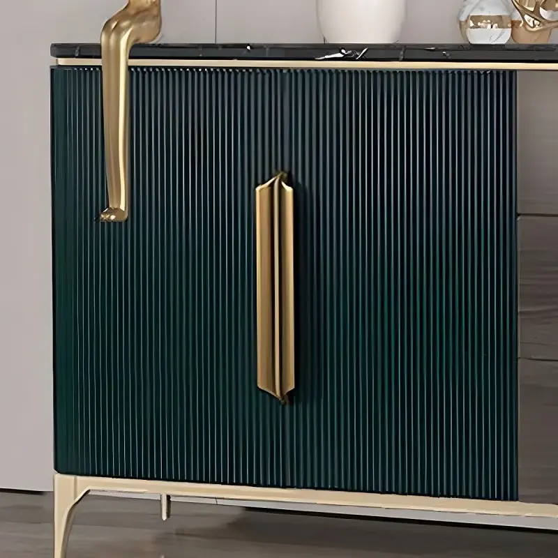بوفيه عملي وأنيق يمنح غرفة الطعام مساحة تخزين منظمة وسطحاً مثالياً للتقديم، مصنوع من خشب متين مع سطح رخام وقاعدة معدنية لثبات يدوم طويلاً.