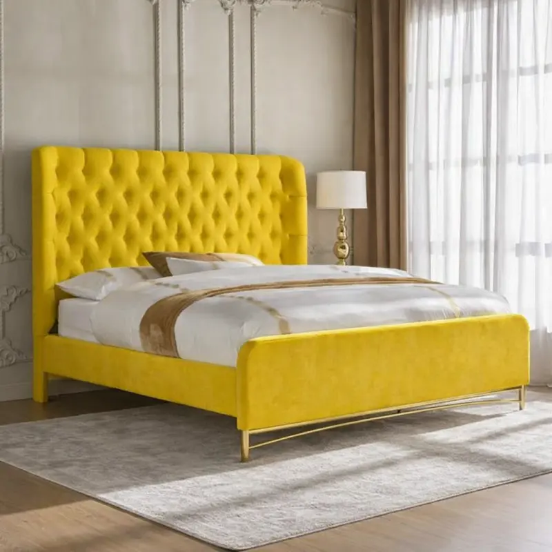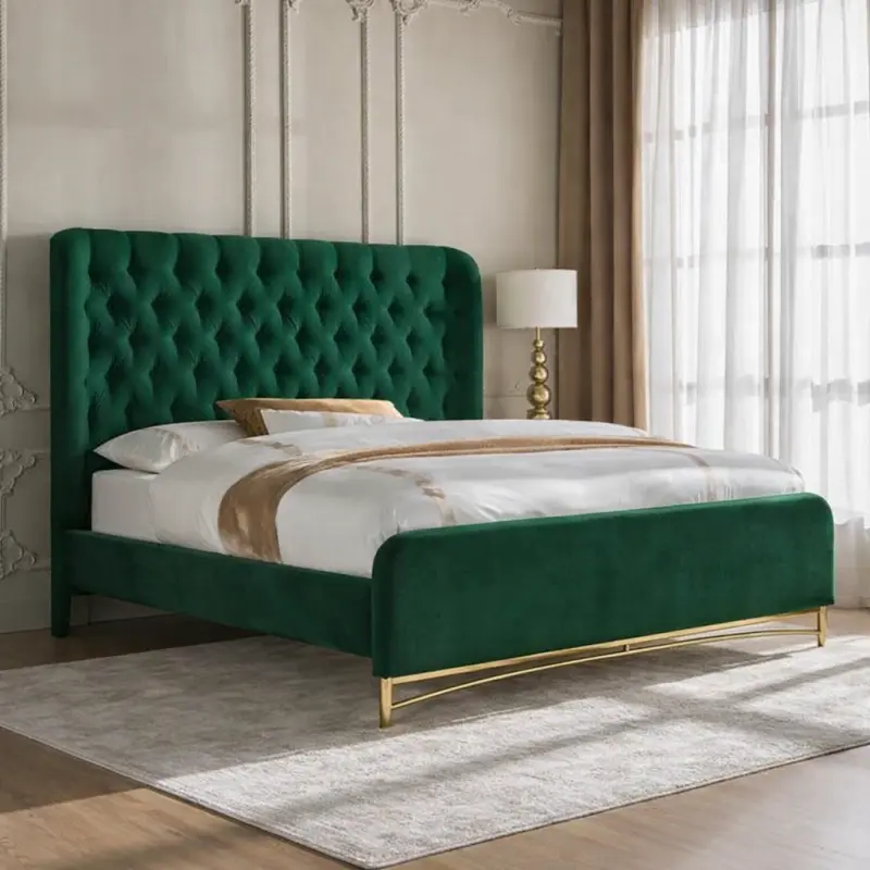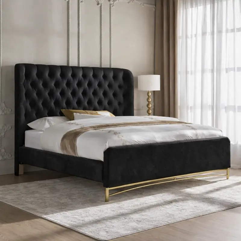 - يتميز السرير بلوح رأس مبطن ومزين بتصميم كابيتونيه مما يمنحه طابع فاخر وأنيق.