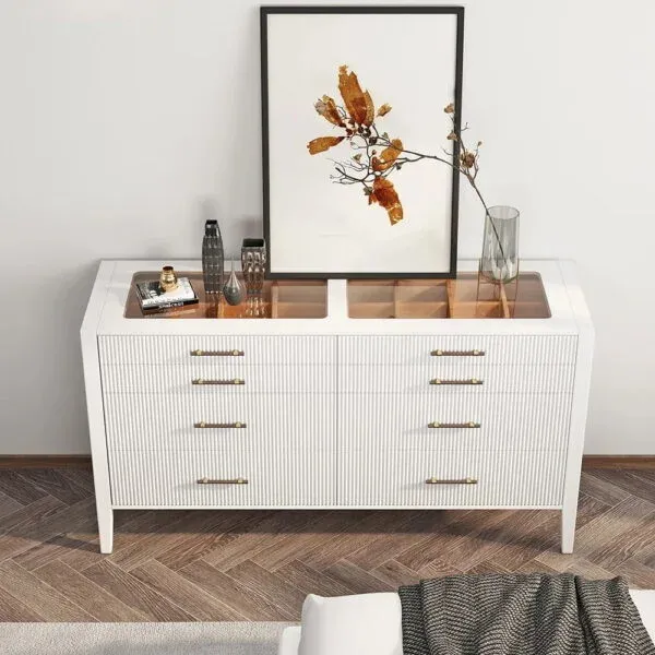 تحتوي طاولة تسريحة على ثمانية أدراج بتوزيع مثالي وانزلاق سلس، ما يمنحك تجربة استخدام مريحة ويساعدك في تخزين أدوات المكياج، العطور، الإكسسوارات، وغيرها من المستلزمات الشخصية. سواء كنت تستخدمينها صباحًا قبل العمل أو مساءً قبل الخروج، فإن التنظيم الواضح يسهل عليك الوصول لكل ما تحتاجينه بسرعة.