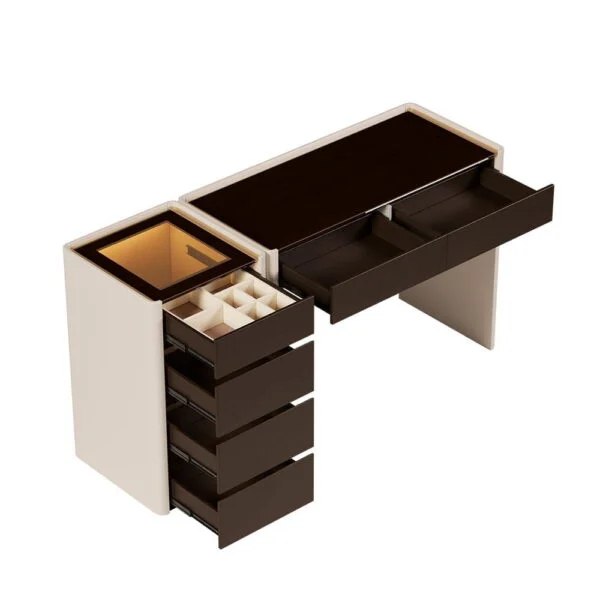 خزانة جانبية بأربعة أدراج لترتيب المجوهرات والإكسسوارات وأغراض العناية.