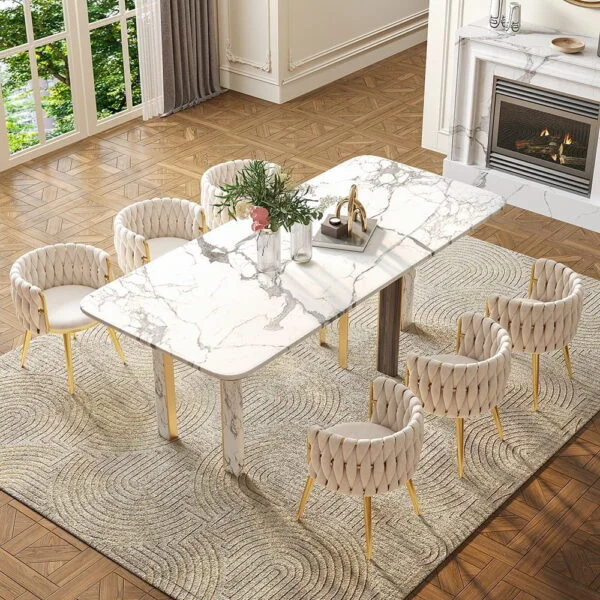 أضف لمسة من الأناقة العصرية إلى مساحة تناول الطعام الخاصة بك مع مجموعة كراسي الطعام . تتميز هذه الكراسي بتصميم ظهر دائري وجلد فاخر ، مما يضيف مظهرًا فخمًا وراحة فائقة.
