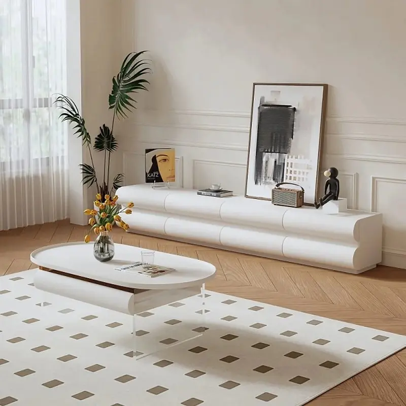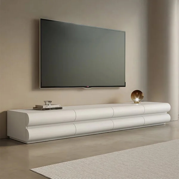 تعد طاولة التلفاز قطعة محورية في غرفة المعيشة، لذا صُممت هذه القطعة بعرض يمتد إلى 200 سم، مما يمنحها حضوراً متزناً وهادئاً يتناسب مع الصالات الواسعة في البيوت . يعكس التصميم الخارجي لمسة من الرقي، حيث يوفر هذا الملمس الناعم مظهراً متجدداً يبتعد عن التصاميم التقليدية، مع ضمان سهولة التنظيف والمحافظة على رونق القطعة لفترات طويلة مهما اختلفت الظروف المناخية.