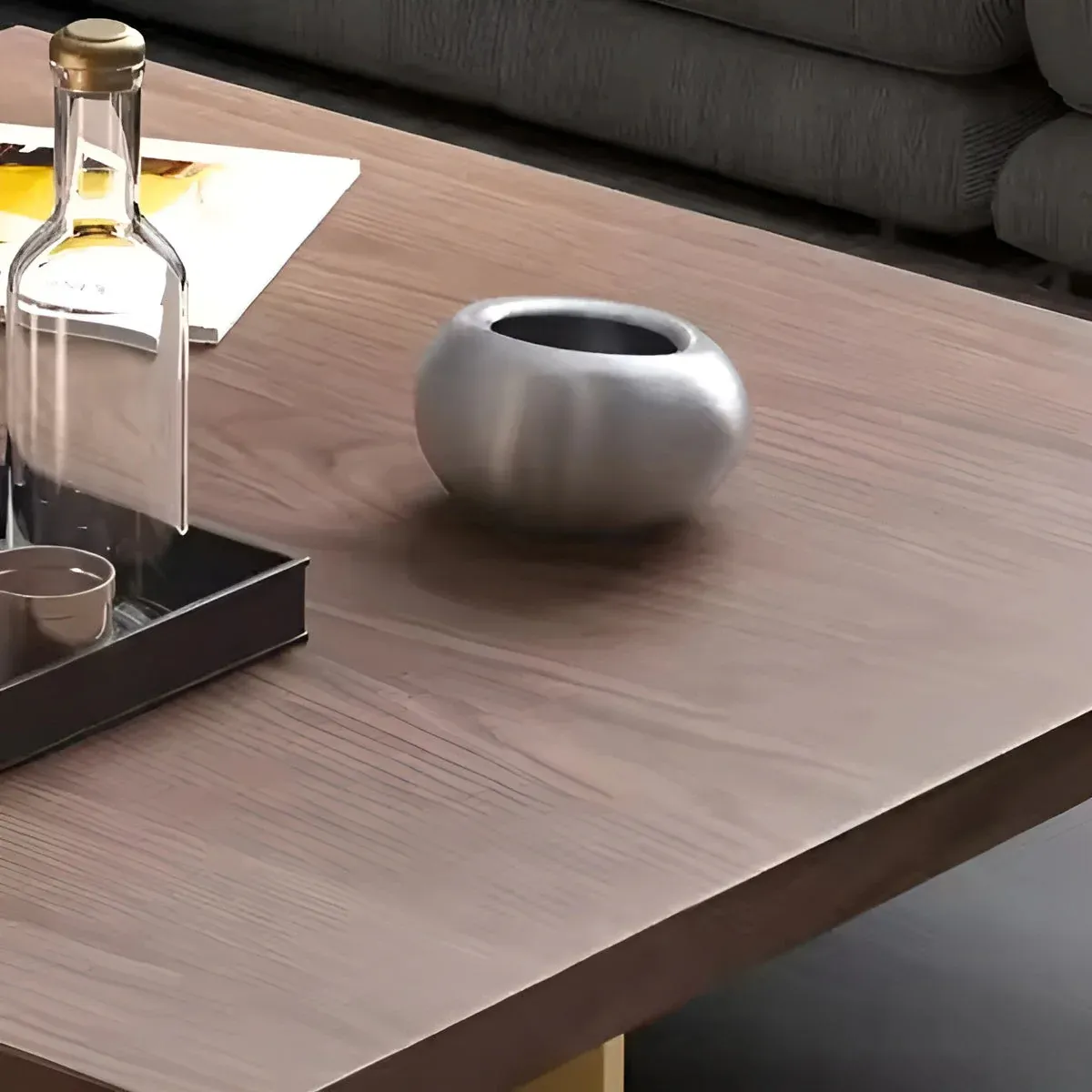 تم تصميم سطح الطاولة بعناية فائقة لضمان متانة استثنائية تدوم طويلاً، حيث يجمع في تركيبته بين الخشب الهندسي وخشب الزان الروماني عالي الجودة. هذه المواد المختارة بعناية مُغطاة بطبقة قشرة خاصة تُقاوم الخدوش الناتجة عن الاستخدام اليومي المنتظم، مما يحافظ على مظهرها الجديد اللامع لسنوات طويلة. القاعدة المصنوعة من الفولاذ المقاوم للصدأ تأتي بلمسة نهائية باللون الأسود على الرغم من لونها الذهبي الظاهر في بعض الأجزاء، مما يرسخ توازنًا بصريًا متكاملًا يمزج بين قوة التحمل والجاذبية البصرية.