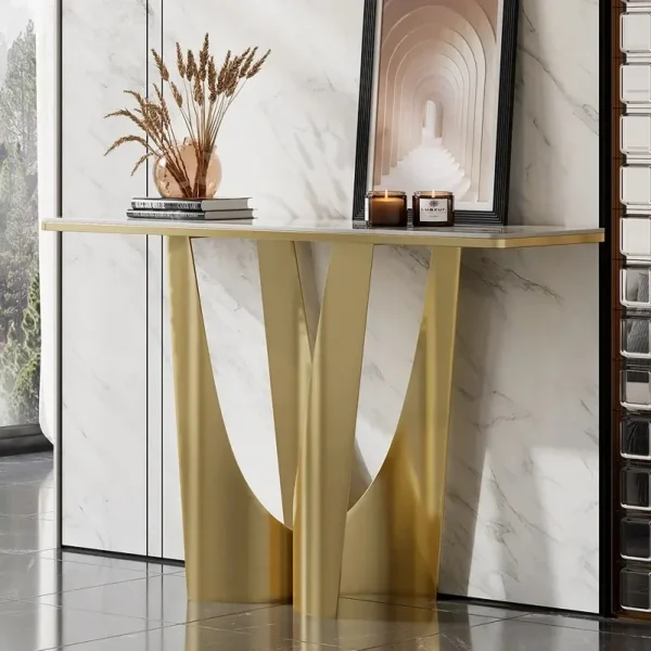 An elegant and sophisticated console table with a modern design that adds a touch of beauty to your home decor. Made of sturdy metal and high-quality marble, it comes with a two-year warranty against manufacturing defects. Available in a variety of colors to suit a variety of tastes.