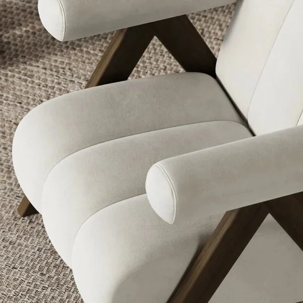 اطار الكرسي المفرد الداخلي مصنوع من خشب هندسي وخشب زان متين عالي الجودة، ما يوفر ثباتًا استثنائيًا ويطيل من عمر الكرسي بشكل ملحوظ. القاعدة والأرجل مصممة لتعطي دعمًا متوازنًا للهيكل، مما يضمن أداءً مثاليًا للاستخدام اليومي. تصميم الأذرع المنحنية والحشوة الكثيفة يعكسان اهتمامًا بالتفاصيل وجودة الصنع.