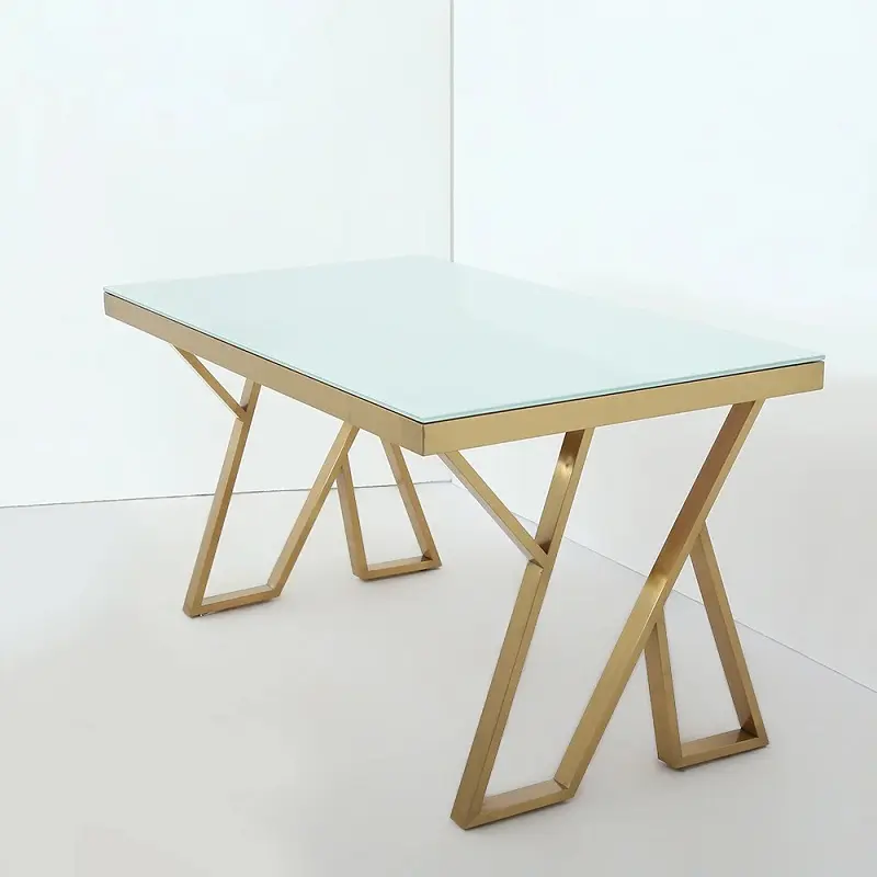 Modern metal base dining table. Add a touch of elegance and luxury to your home with this modern dining table. This table features a sturdy metal base and a solid marble top, making it ideal for frequent use and easy cleaning.