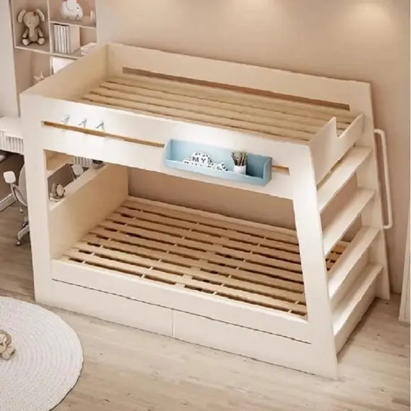 سرير اطفال دورين بتصميم عصري يجمع الأناقة والعملية، يتميز بحواف علوية آمنة ورف مدمج، وسرير سفلي مريح مع درج تخزين إضافي، ألوان هادئة وسلم جانبي آمن يضمن راحة وسلامة أطفالك الان في السعودية من ماستر.