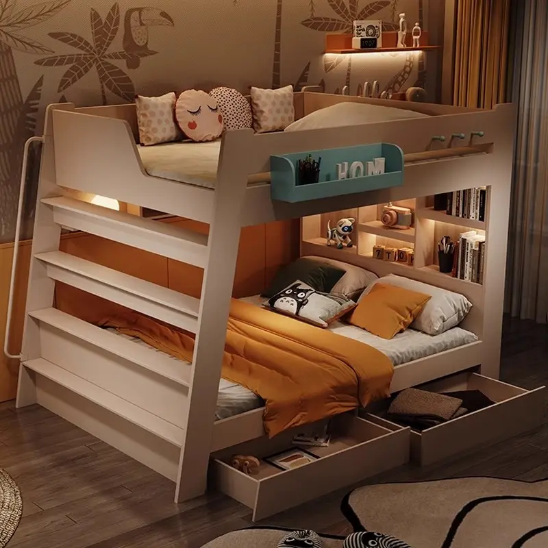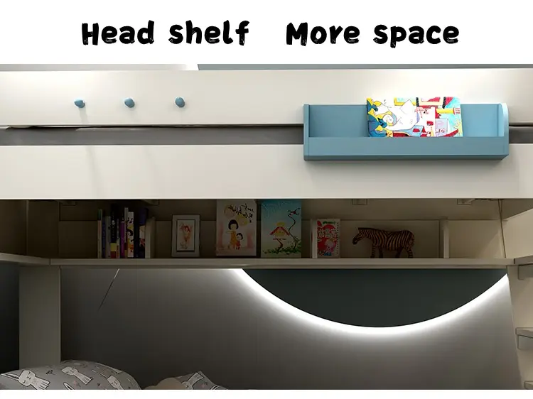 - درج سفلي كبير يوفر مساحة تخزين إضافية للألعاب أو الملابس، أدراج مدمجة في السرير السفلي تساعد في الحفاظ على الغرفة مرتبة ومنظمة.