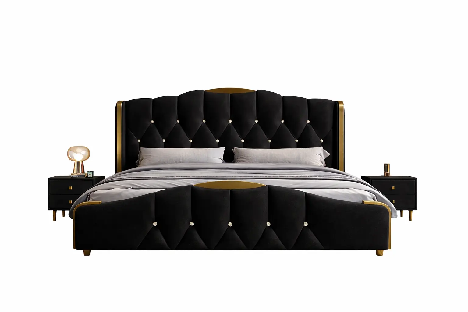 تتميز الأسرة في متجر Master Room بكونها مصنوعة من خشب هندسي وخشب زان روماني عالي الجودة، مما يضمن القوة والمتانة. الإطار مصنوع من الستيل المذهب الصلب، مما يضيف لمسة من الفخامة.