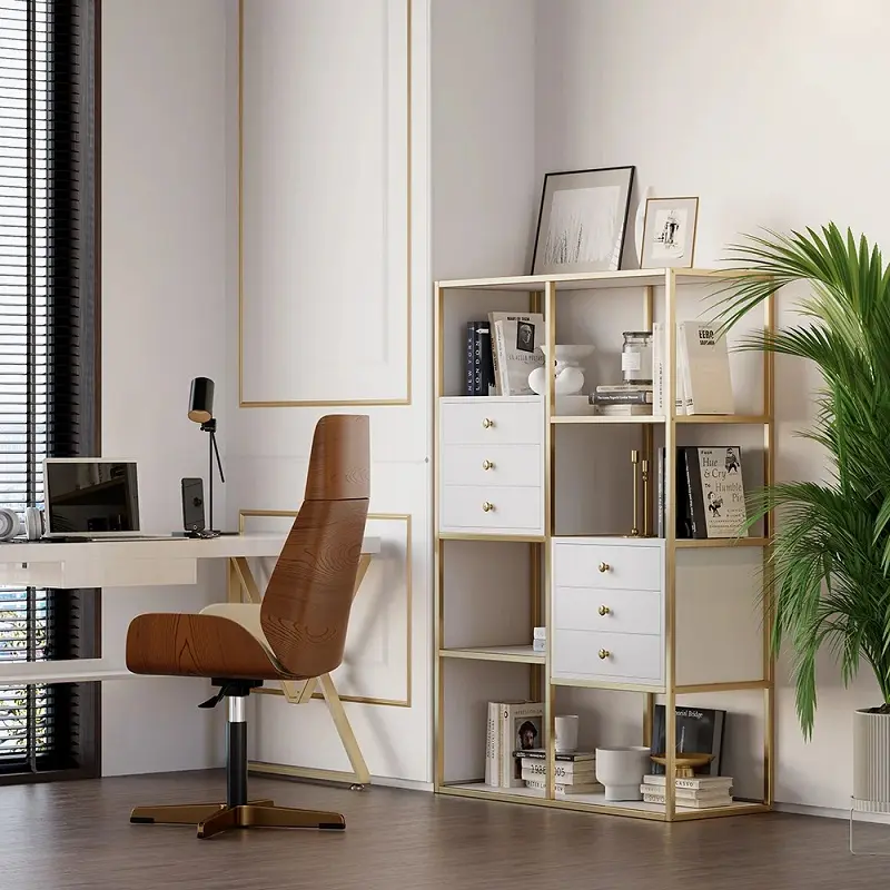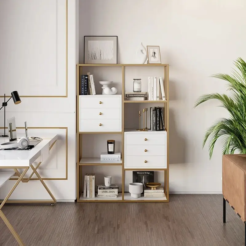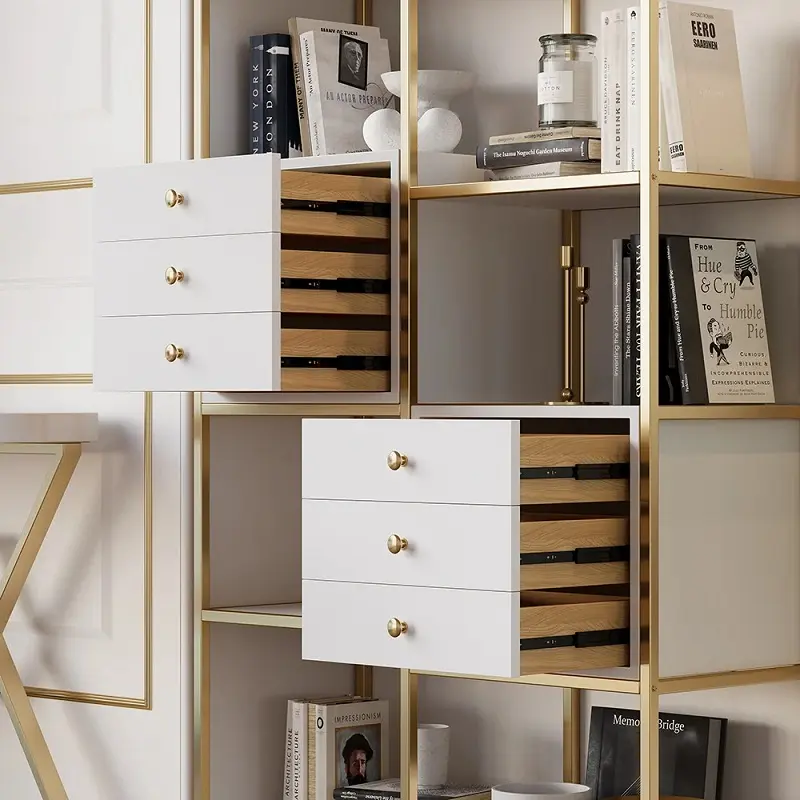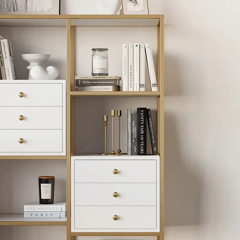 تأتي الخزانة بألوان متناسقة تجمع بين الأبيض والذهبي، ما يمنحها حضورًا هادئًا وأنيقًا في المساحة دون أن يطغى على باقي عناصر الديكور. هذا التناغم اللوني يجعلها مناسبة للديكورات الحديثة والكلاسيكية البسيطة على حد سواء، وهو ما يفضله الكثير منن الباحثين عن قطع عملية بطابع عصري.