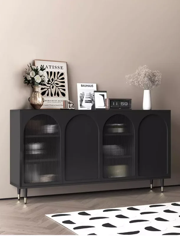 This elegant wooden buffet table combines beauty and function. It's crafted from high-quality engineered wood and Roman beech wood, with sturdy metal legs and high-quality glass. Available in several sizes to suit all needs, it's available in black and white. It's easy to clean with just a light wipe. It comes with a two-year warranty against manufacturing defects in the GCC, ensuring long-lasting quality.