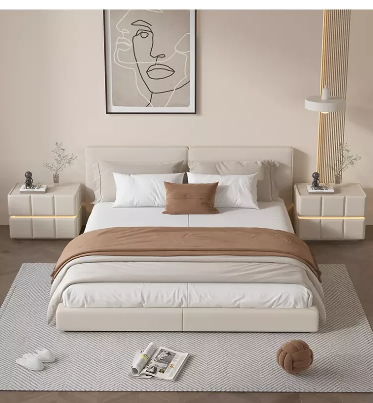 غرفة نوم ملكية كاملة من ماستر روم بتصميم يجمع بين الفخامة والعملية. مصنوعة من خشب هندسي وخشب زان روماني مع لمسات من الستانلس والزجاج المقوى لمتانة وأناقة تدوم. تشمل سرير واسع، خزانة ملابس رحبة، تسريحة أنيقة وكومودينة عملية بمقاسات مدروسة تناسب كل بيت سعودي عصري. سهلة التنظيف وتأتي بضمان سنتين ضد عيوب التصنيع.