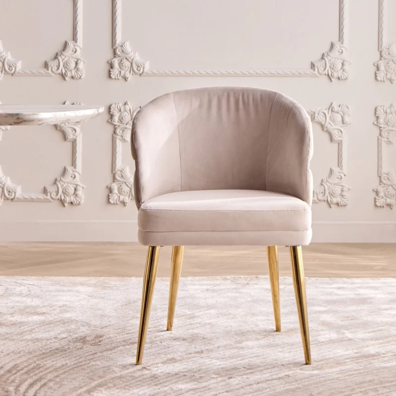 This modern fabric dining chair combines elegance and comfort in a distinctive, contemporary design. Made from high-quality materials and exquisite detailing, it's an ideal choice for enhancing your dining or living room decor with a distinctive, contemporary touch.