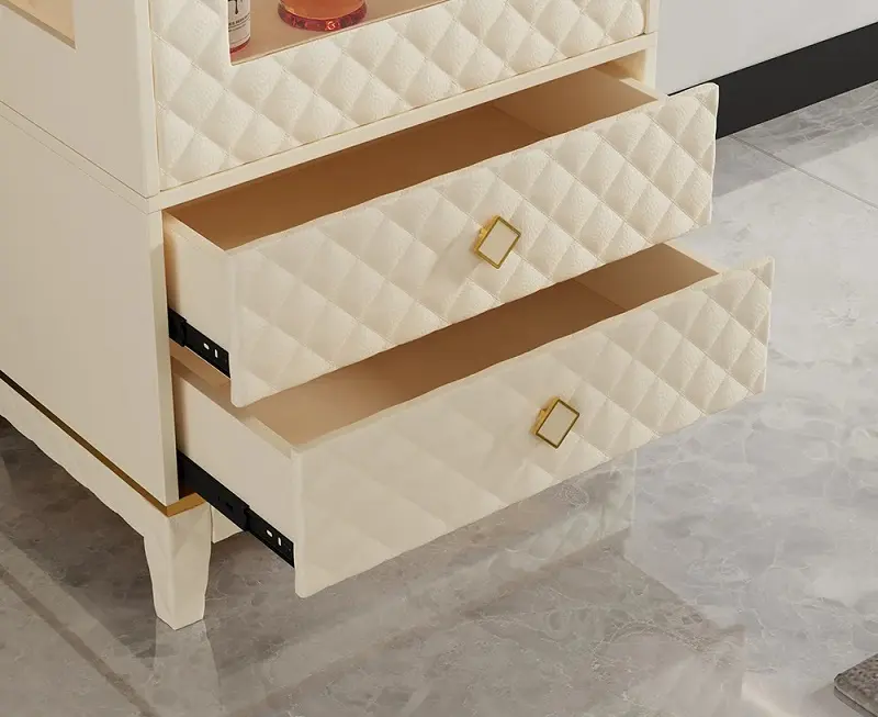 بالإضافة إلى ذلك، يمكن استخدام سطح الخزانة لعرض قطع الزينة أو تجهيز الضيافة بشكل سريع، مما يجعلها قطعة عملية ومزينة في الوقت نفسه.
